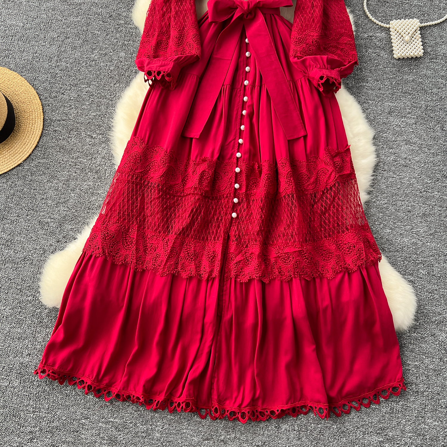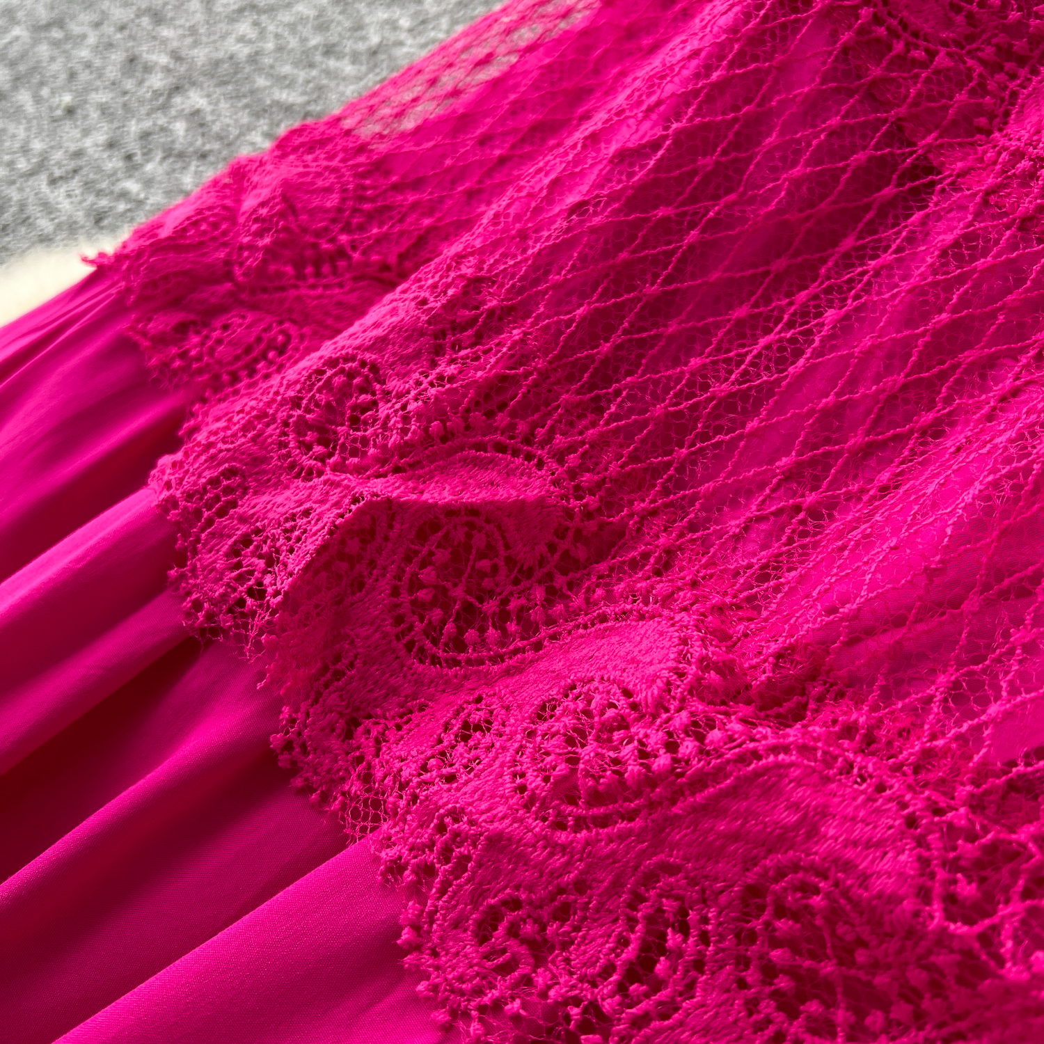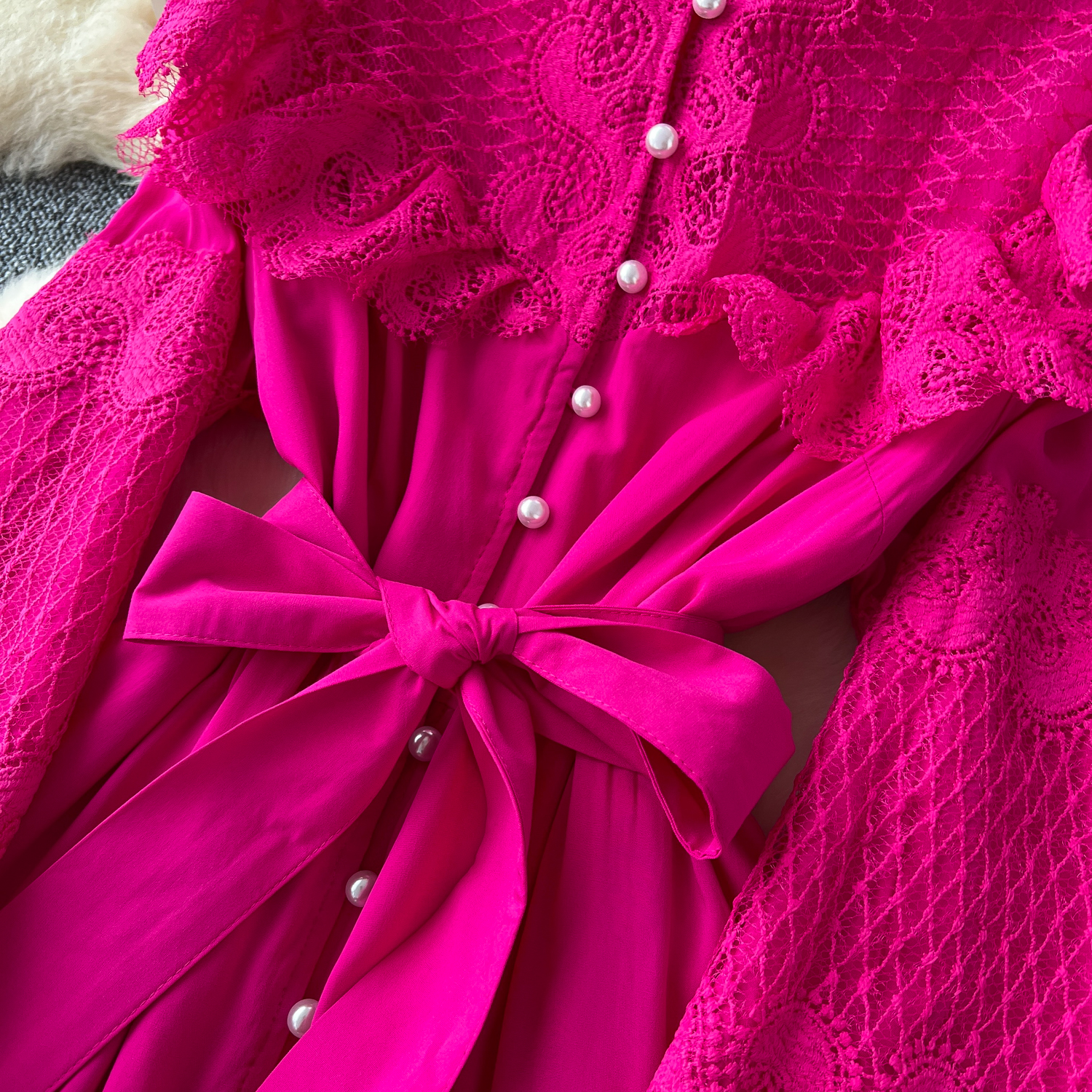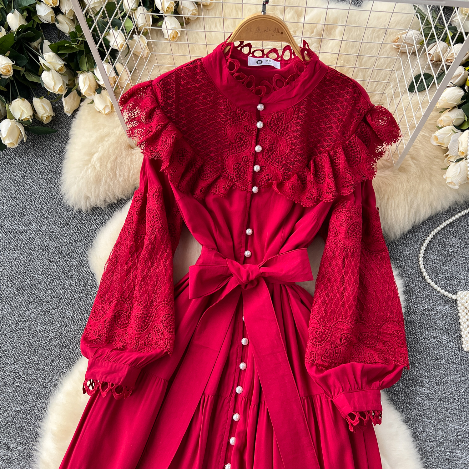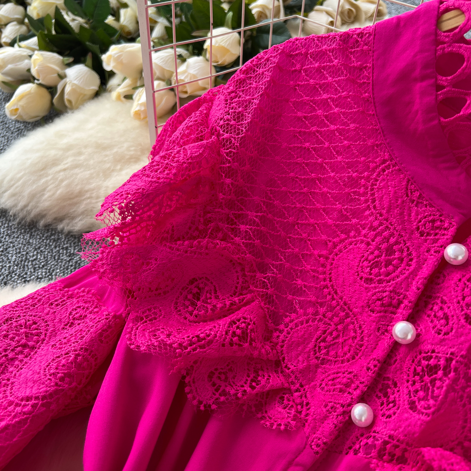 Vintage Vogue French Court Maxi Dress with Lace Panels and Ruffles