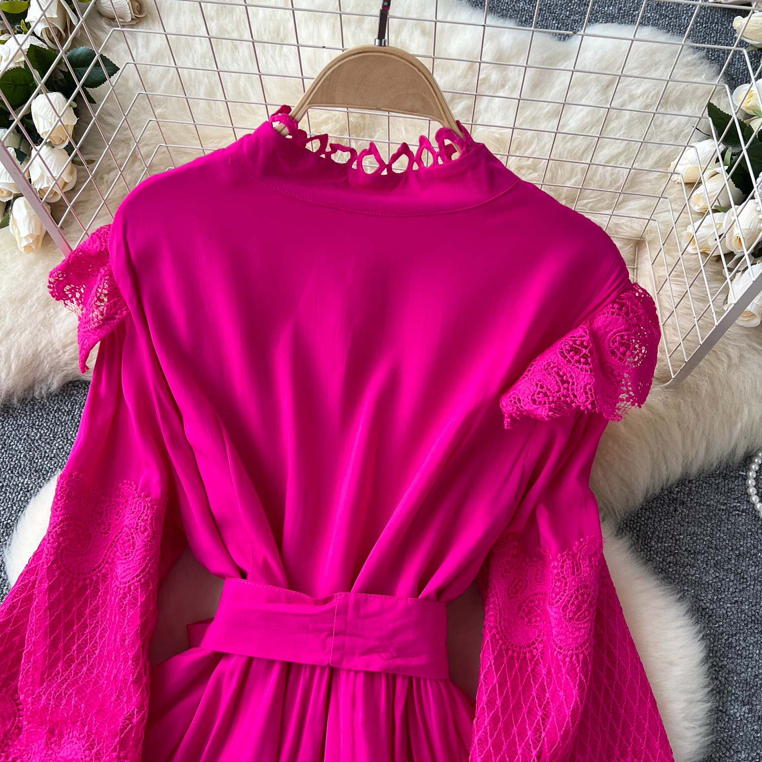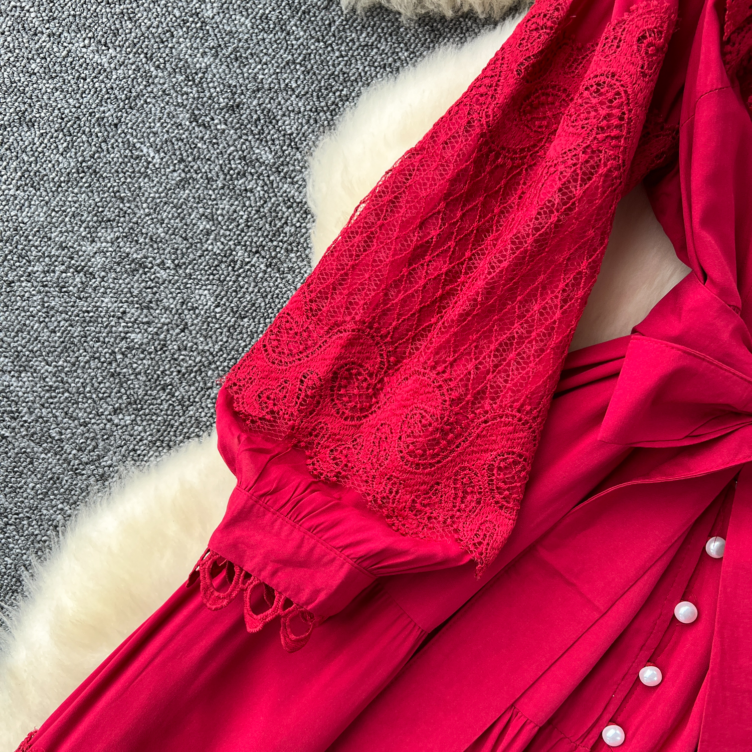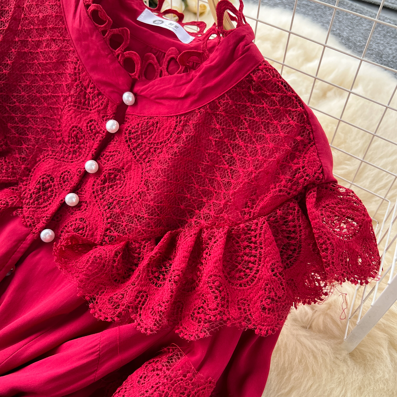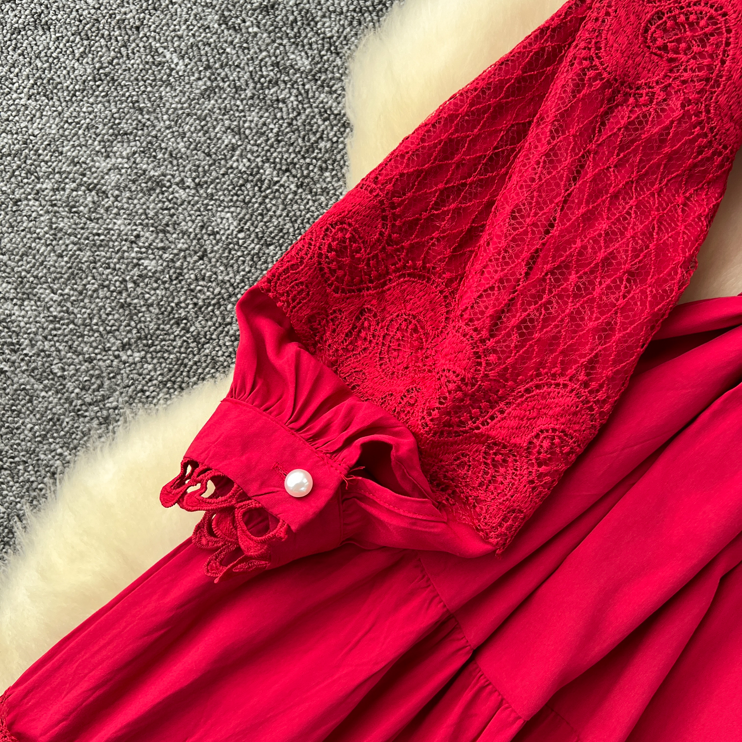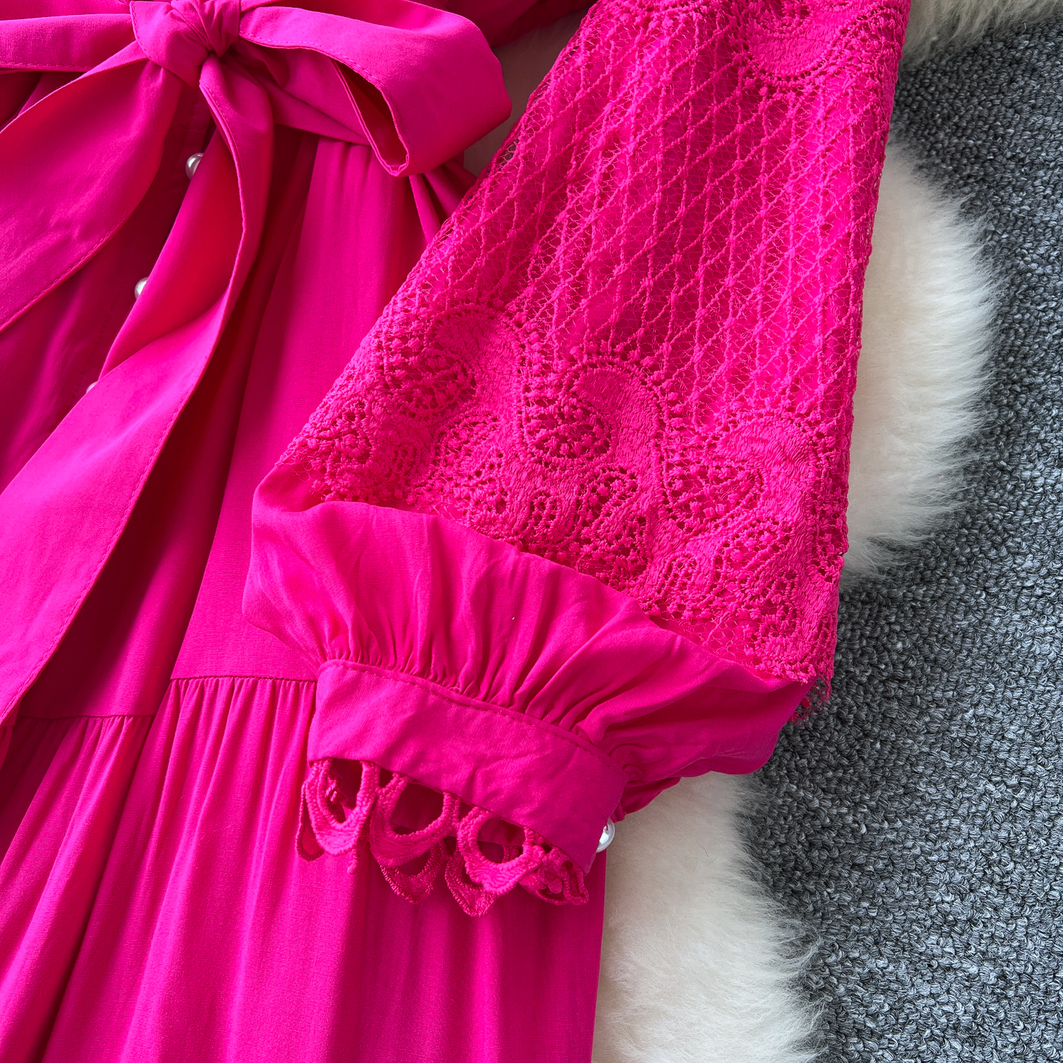 Vintage Vogue French Court Maxi Dress with Lace Panels and Ruffles