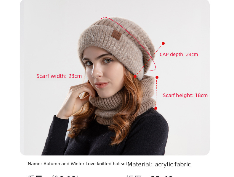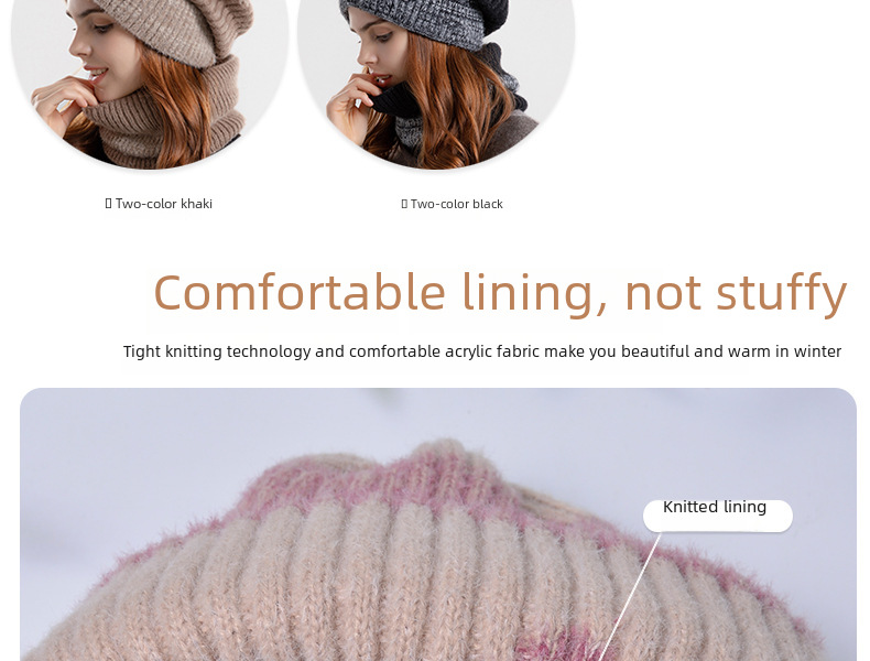 Winter Cross Border Two-Color Thickened Warm Ear Protector Plus Fleece Neck Two Piece Knitted Beanie Hat