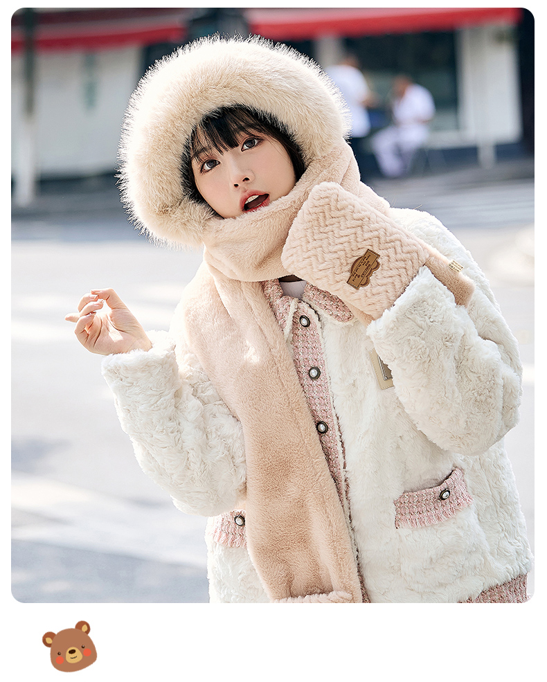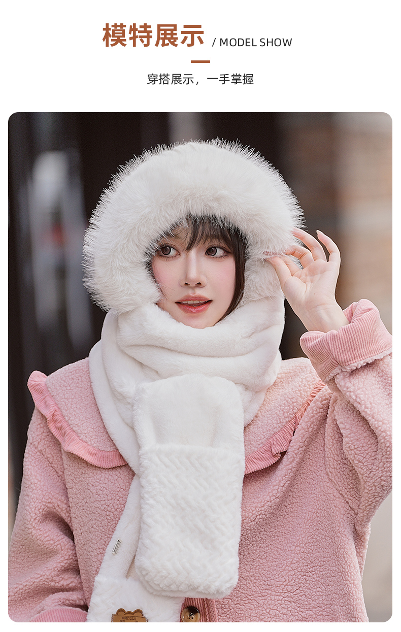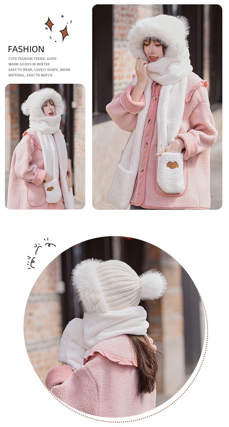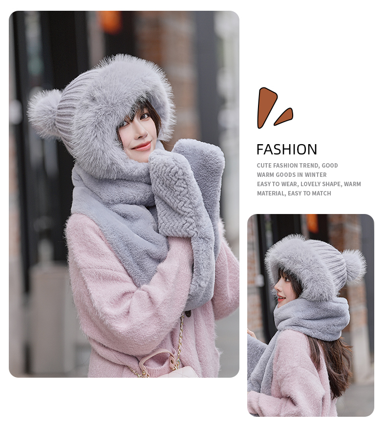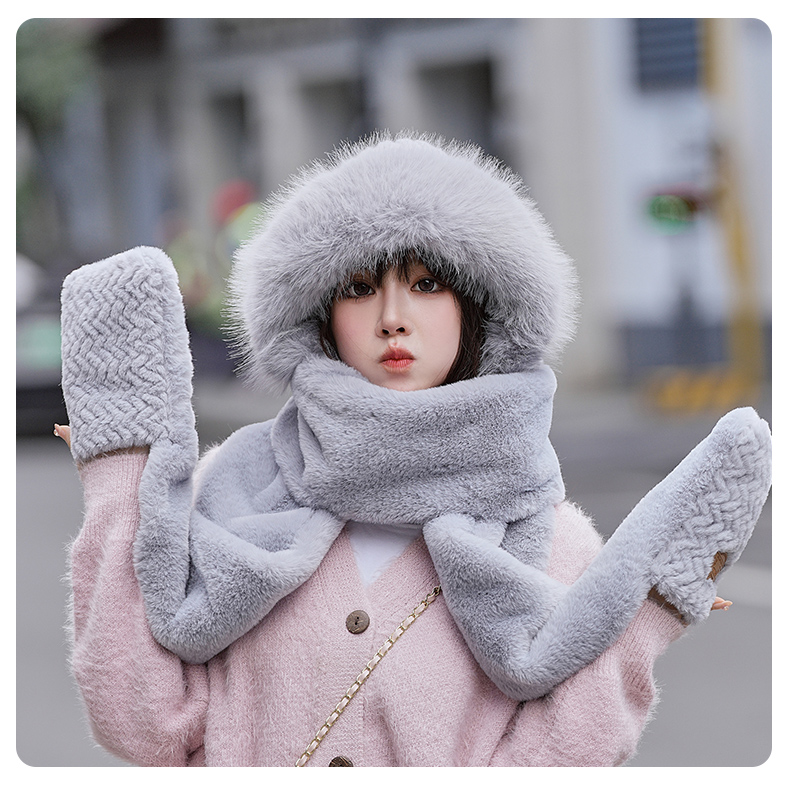 Winter Thickened And Warm Fleece Hat Style Scarf Gloves 3 In One Cold-Proof Plush Hat
