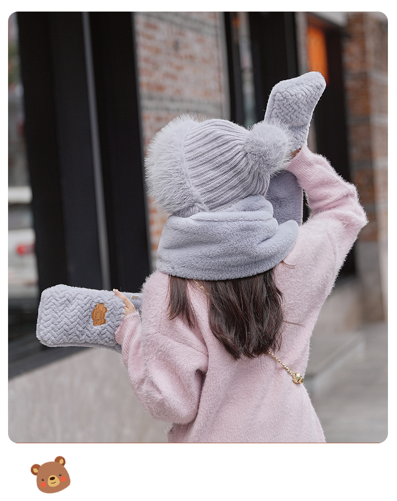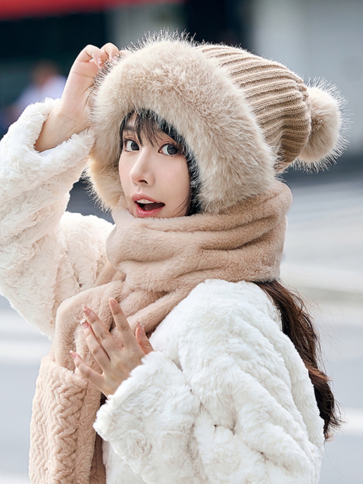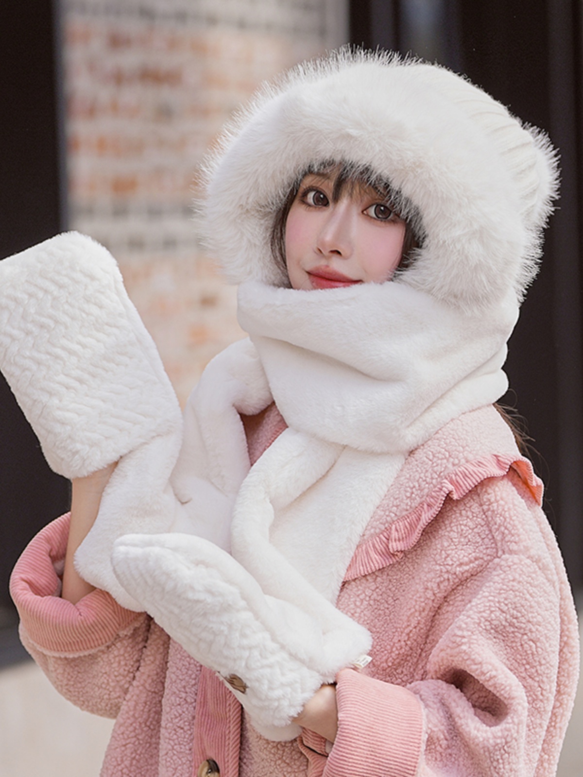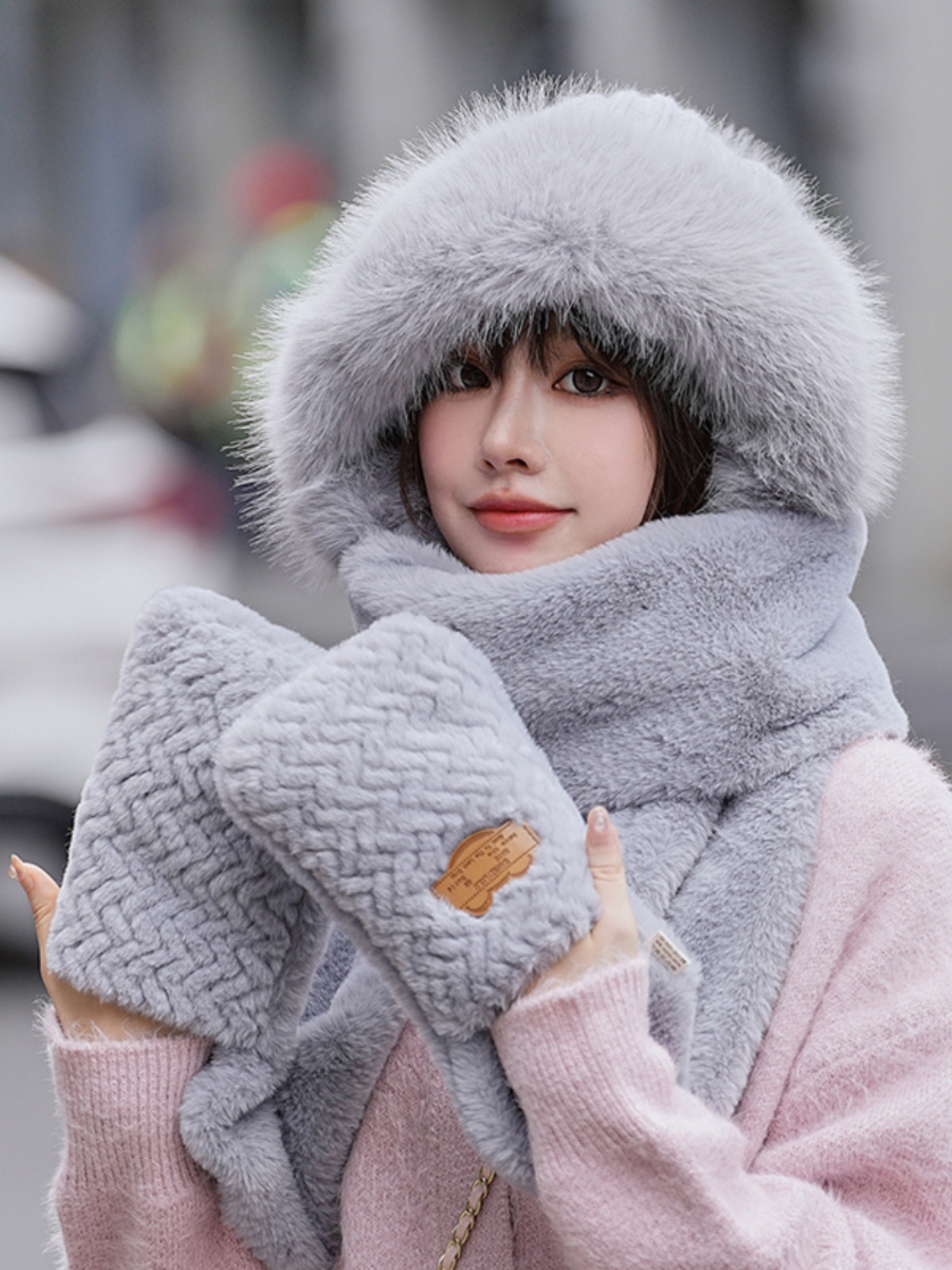 Winter Thickened And Warm Fleece Hat Style Scarf Gloves 3 In One Cold-Proof Plush Hat