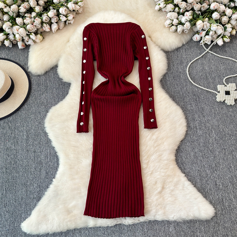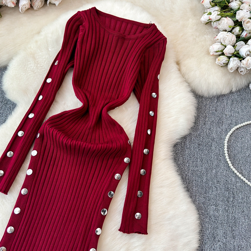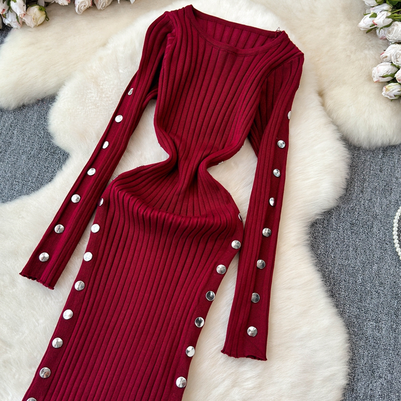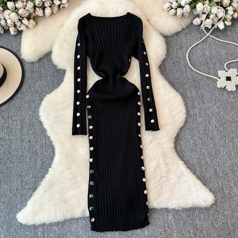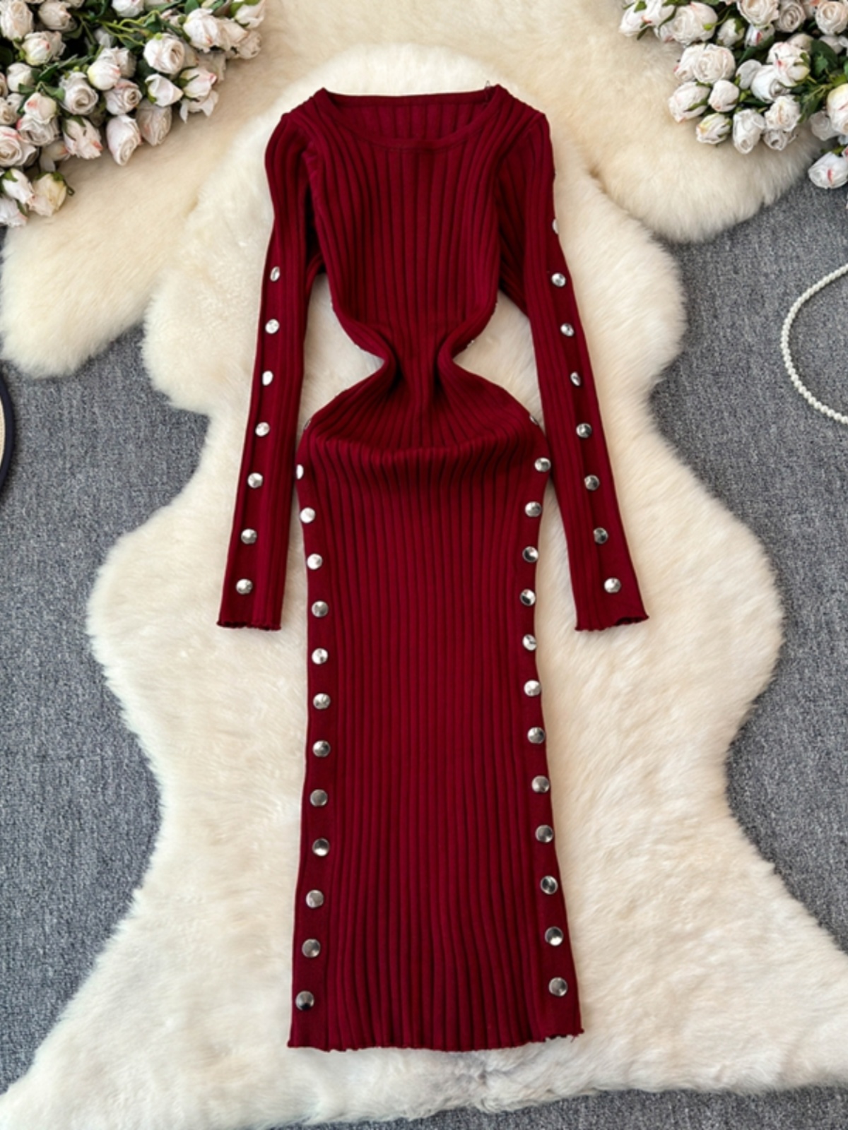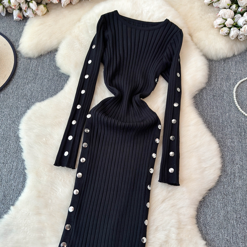 Women's Knitted Round Neck Long Sleeve Slim Hip Bodycon Dress For Winter