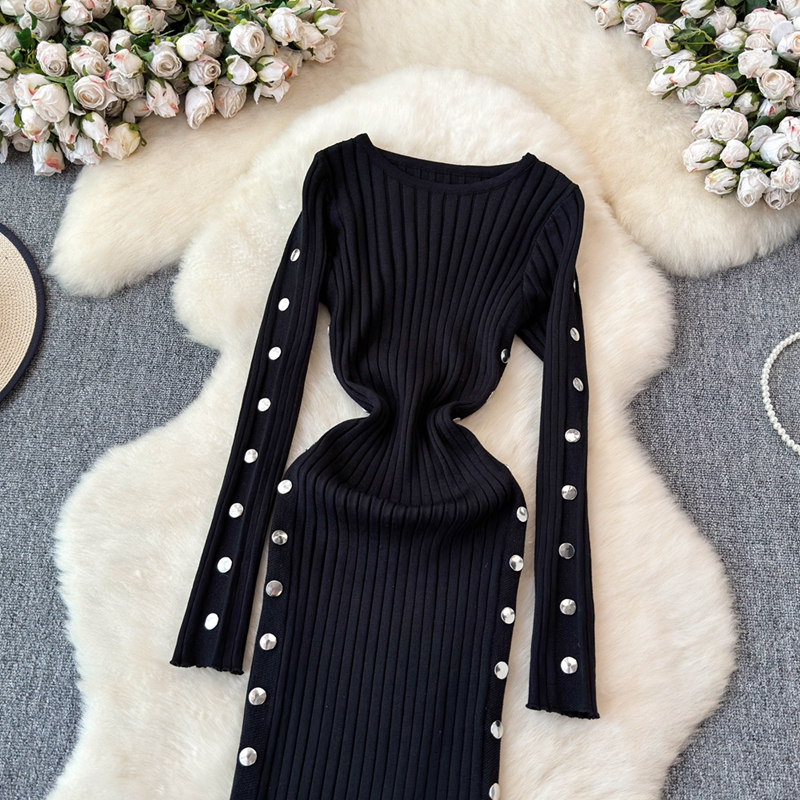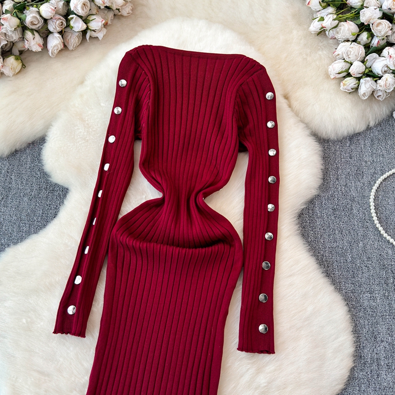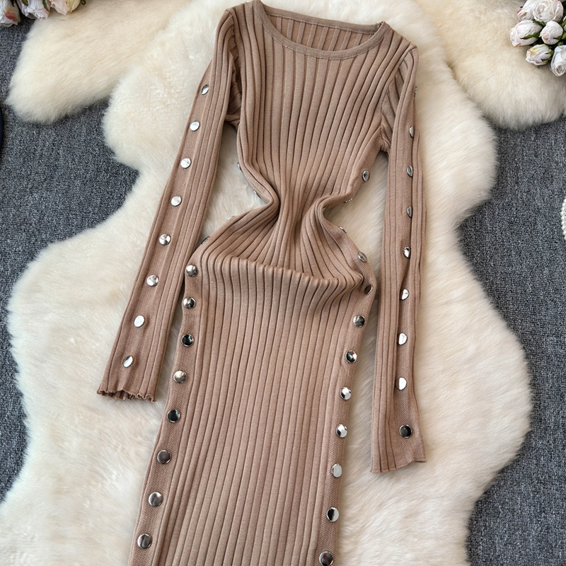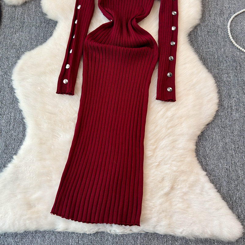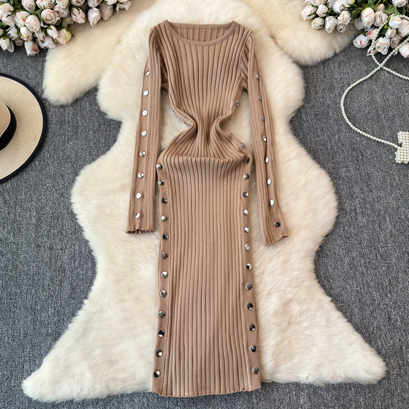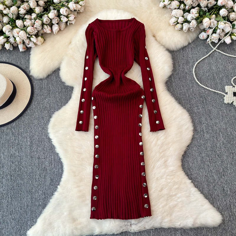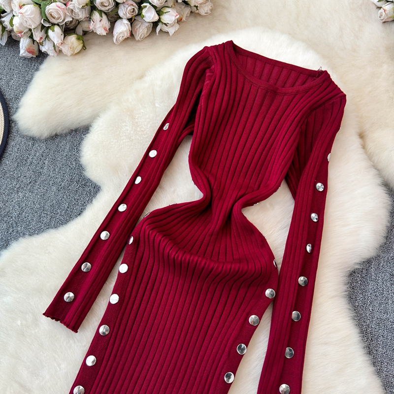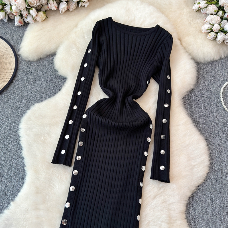 Women's Knitted Round Neck Long Sleeve Slim Hip Bodycon Dress For Winter