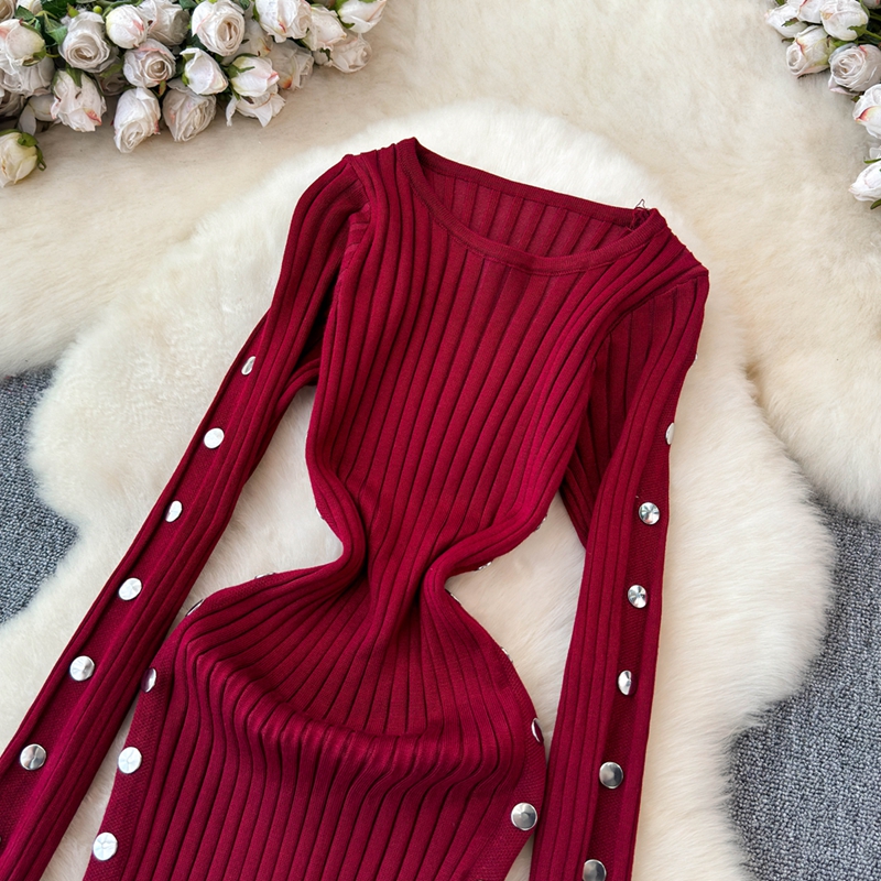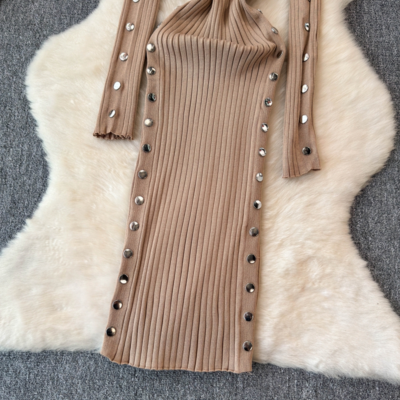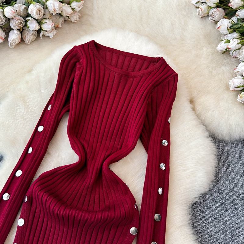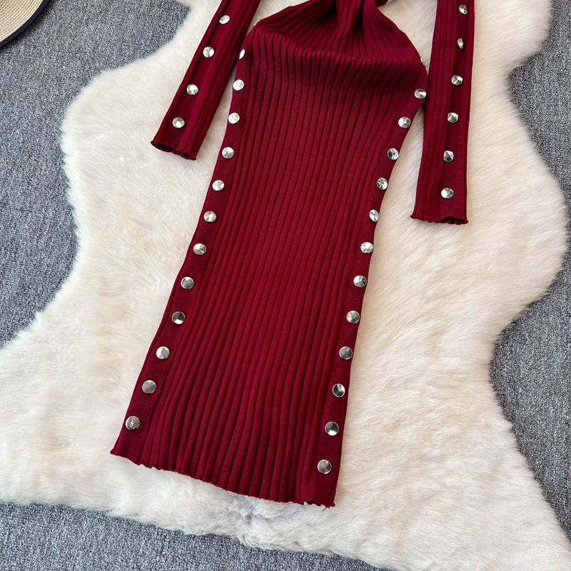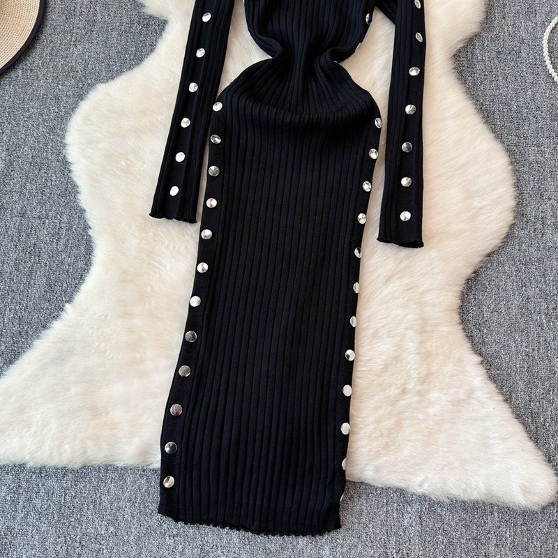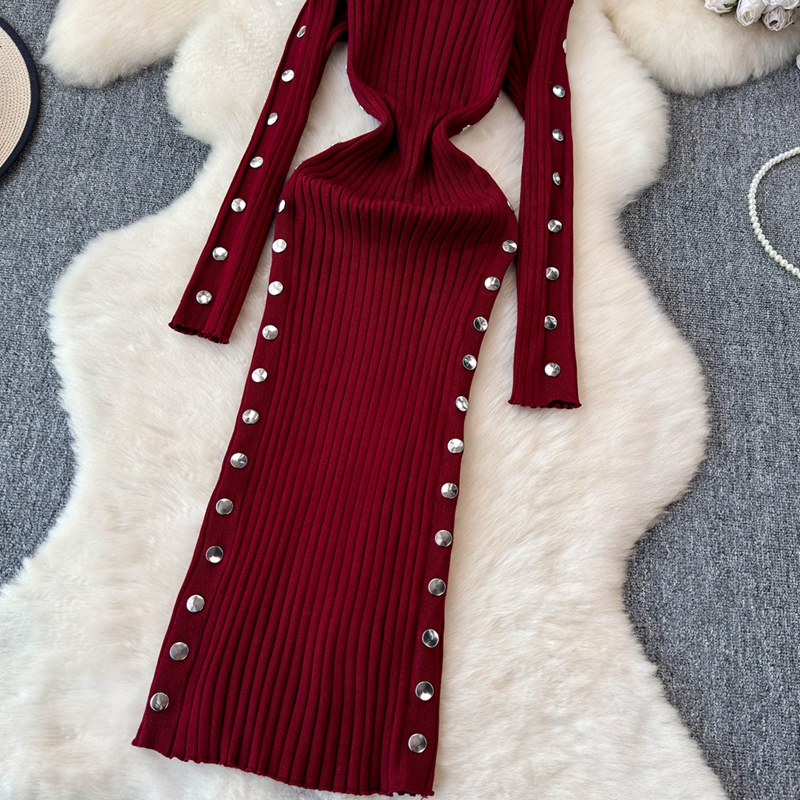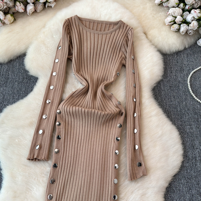 Women's Knitted Round Neck Long Sleeve Slim Hip Bodycon Dress For Winter