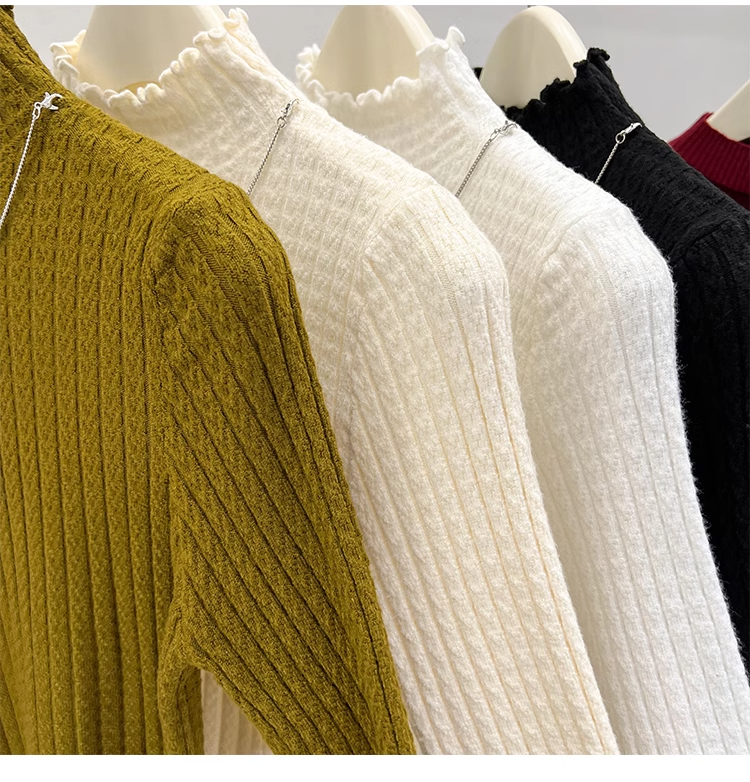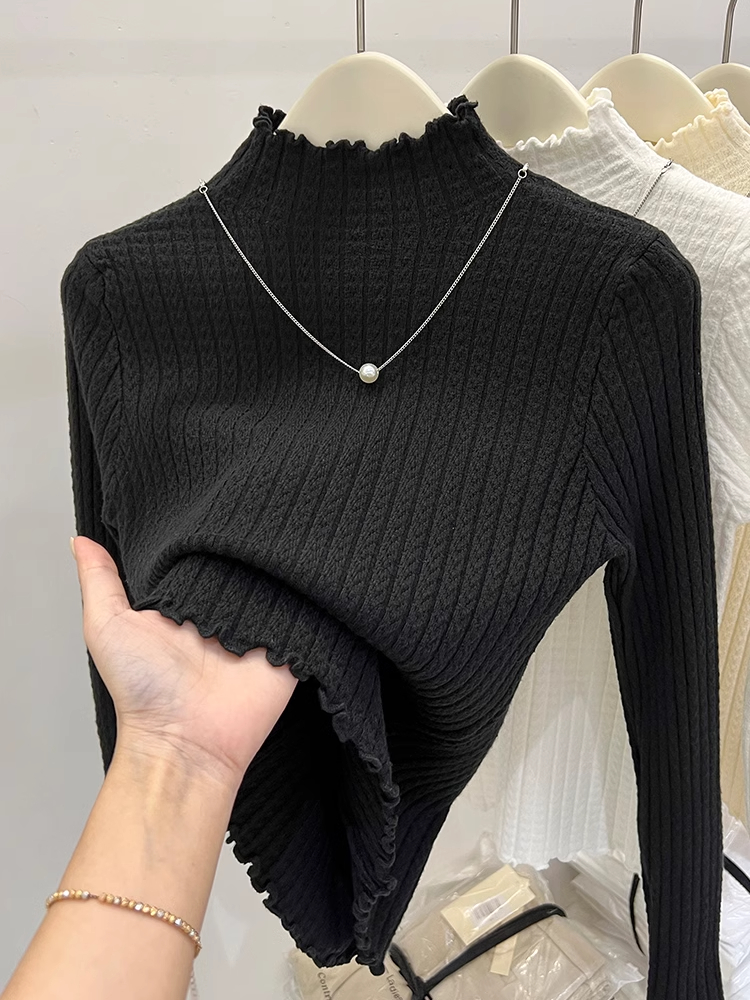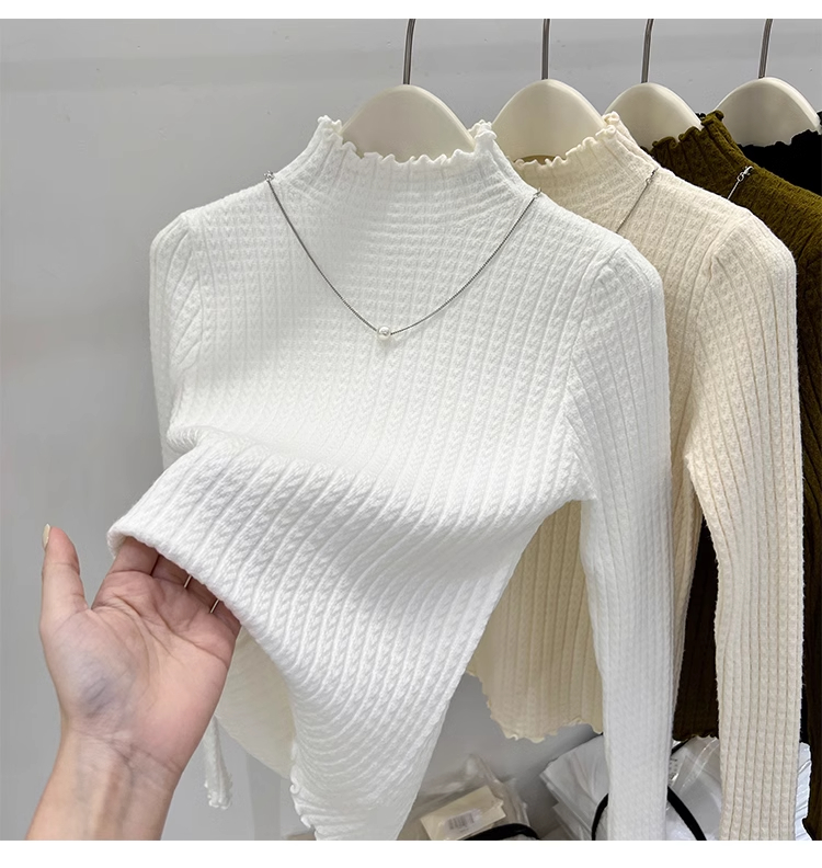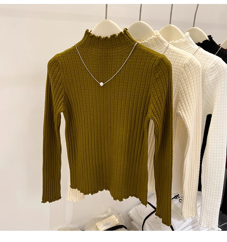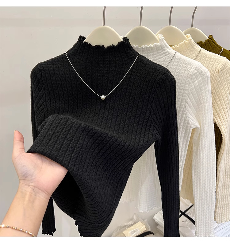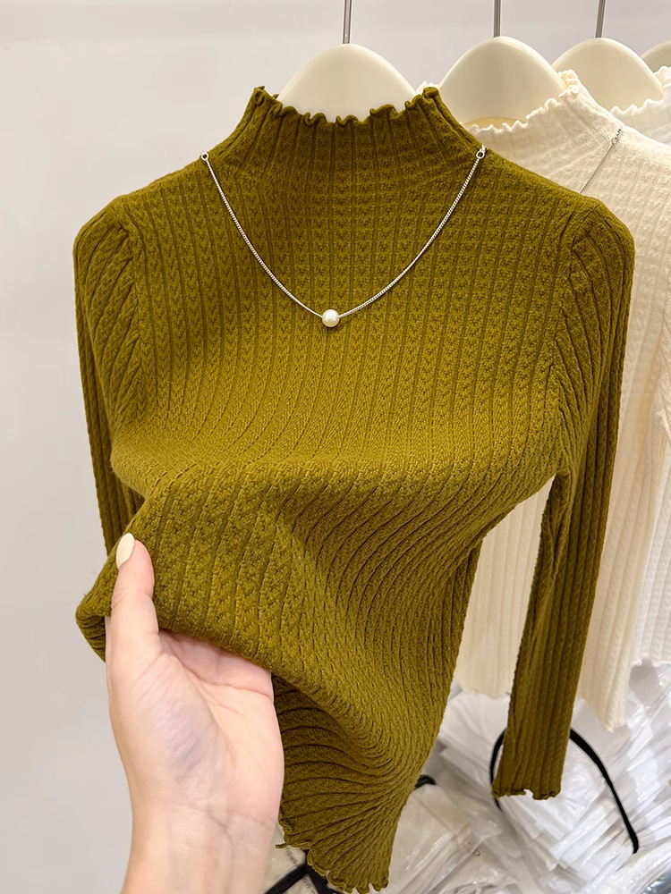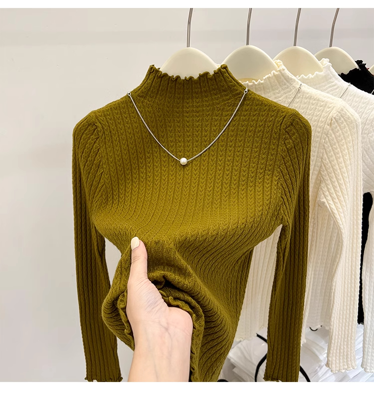 Women's Mid-Neck Base Half-Turtleneck Sweater With Inner Layer knitted Top For Winter