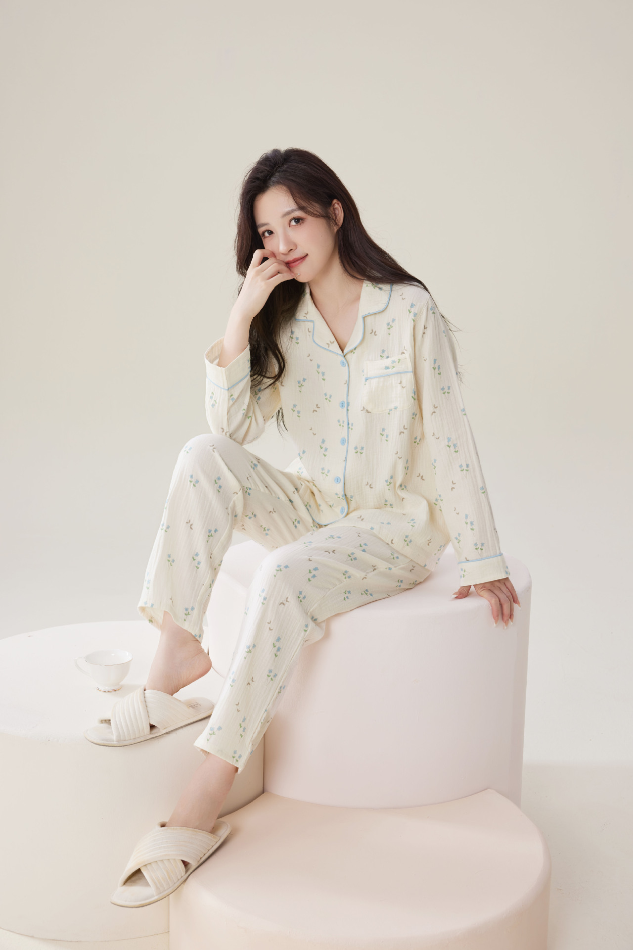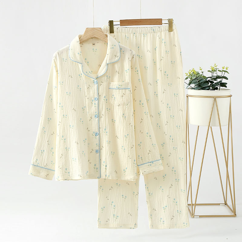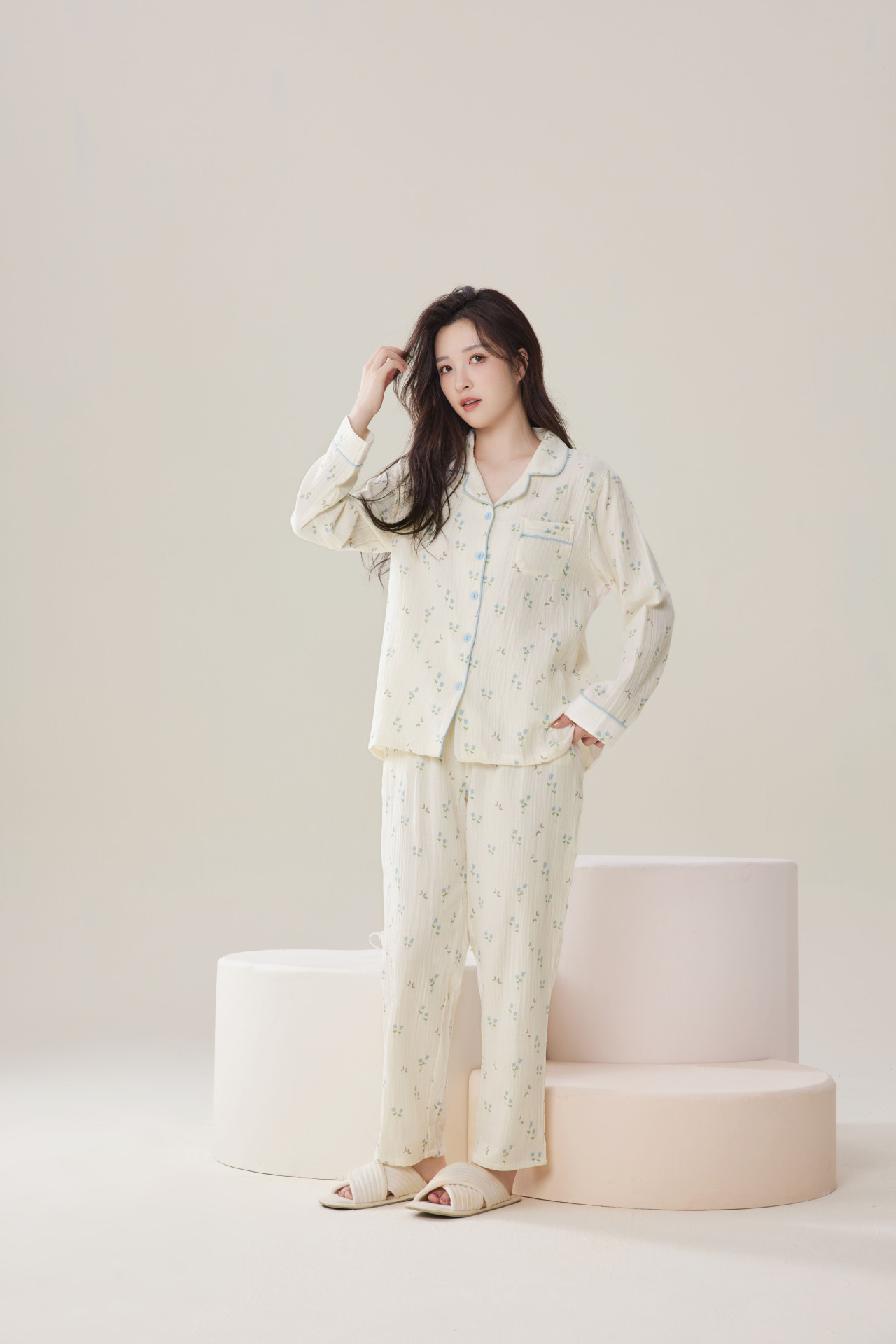Women's New Crepe Cotton Yarn Thin Floral Printed Loungewear Suit For Spring And Autumn