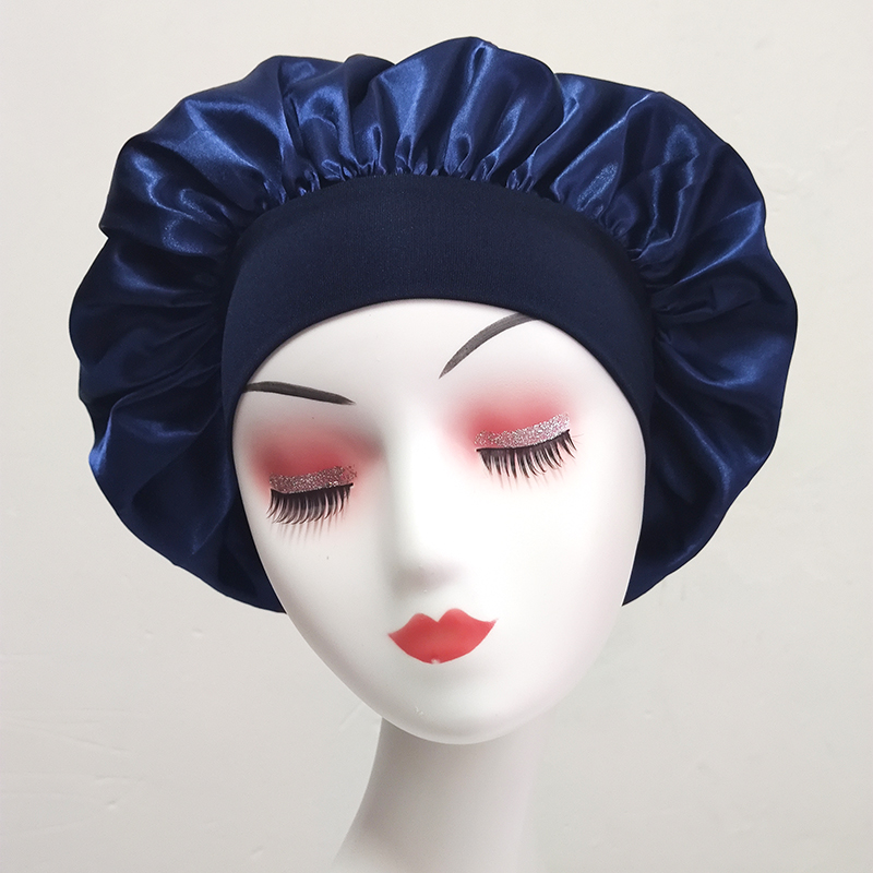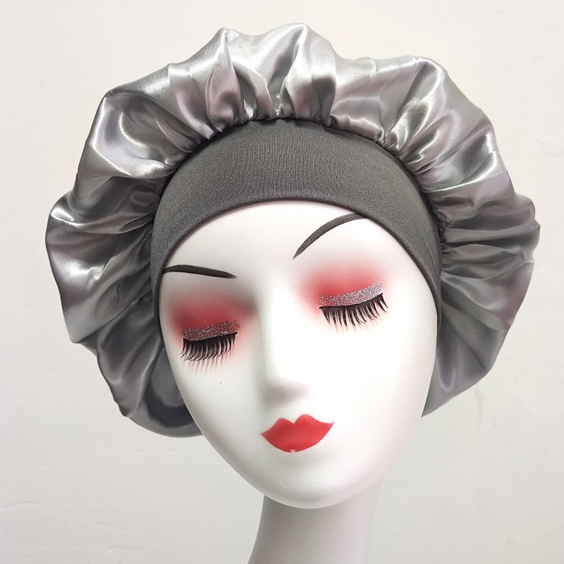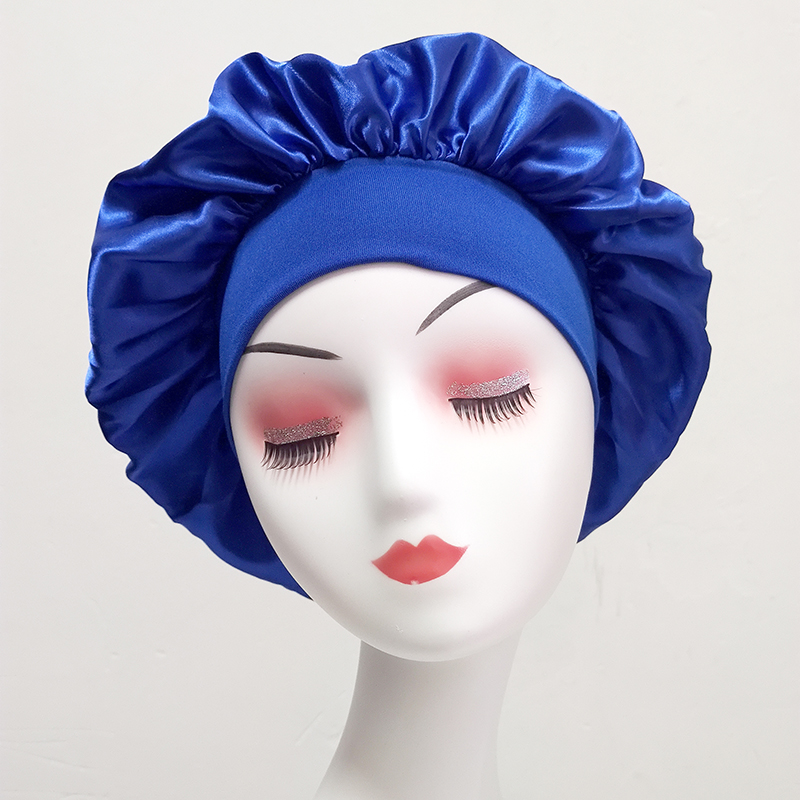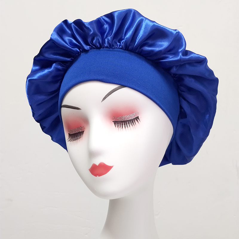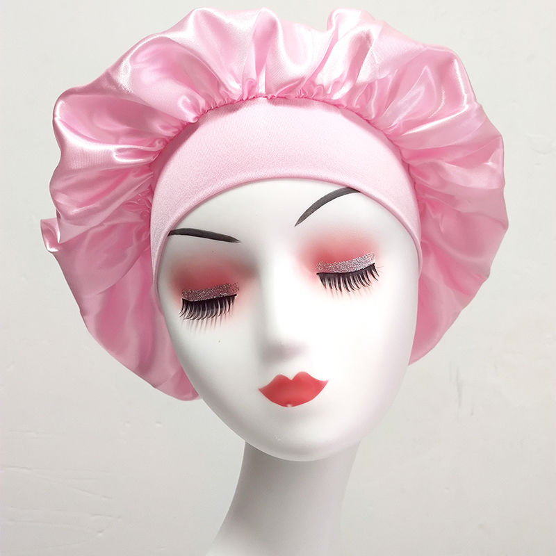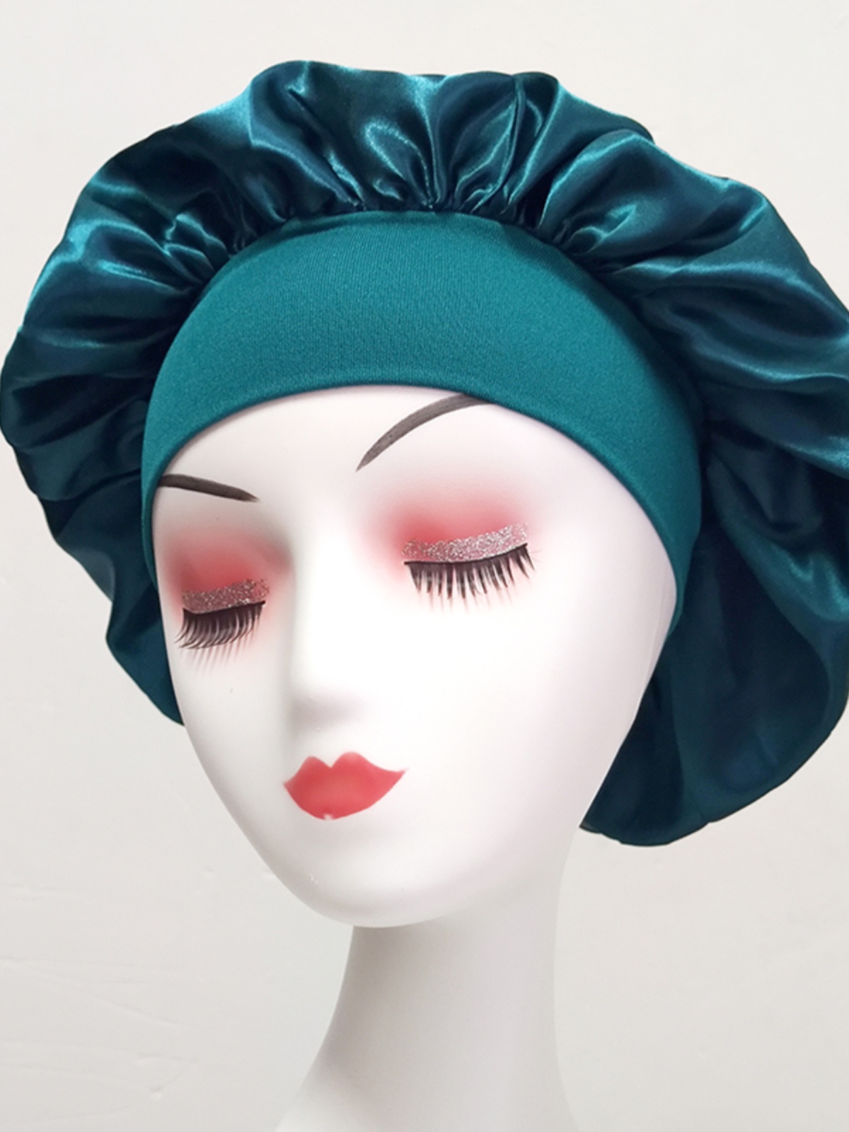 Women's Solid color Wide-Brimmed Elastic Satin Nightcap Sleeping Hair Cap