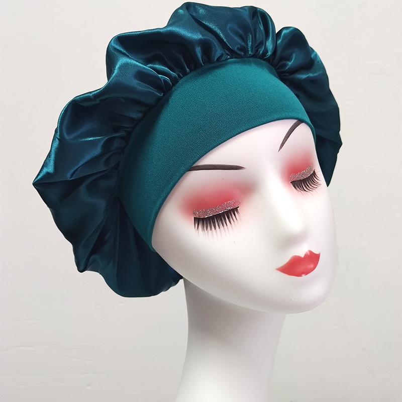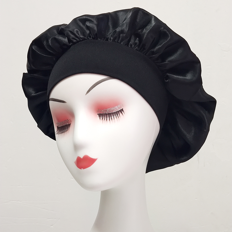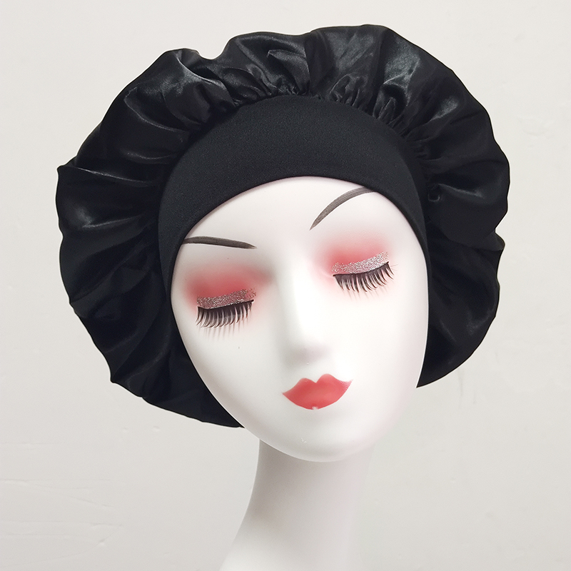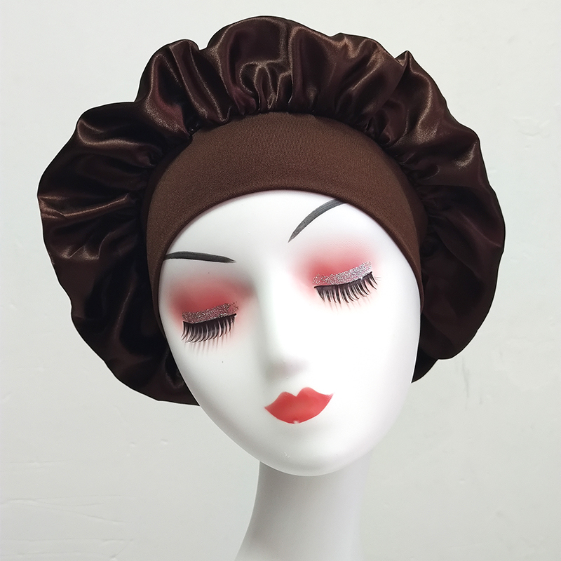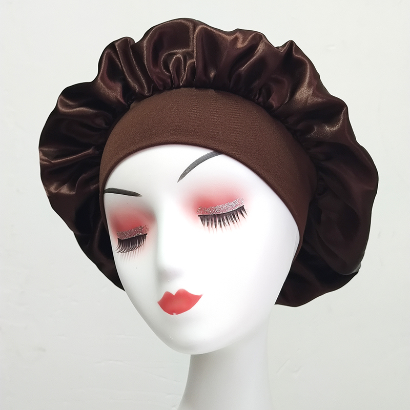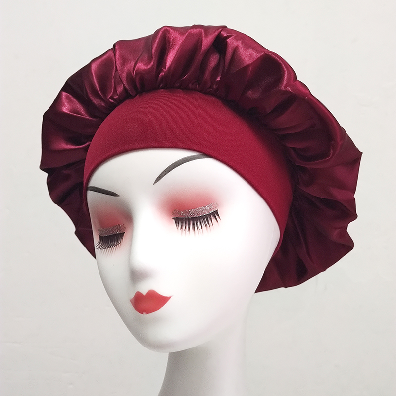 Women's Solid color Wide-Brimmed Elastic Satin Nightcap Sleeping Hair Cap