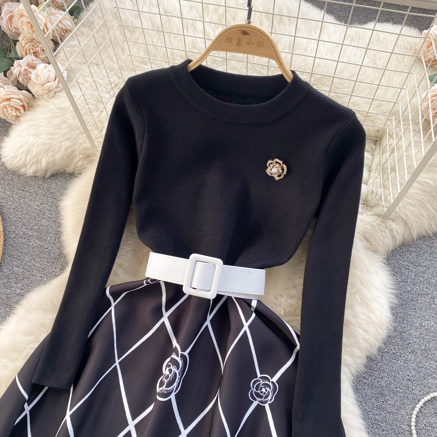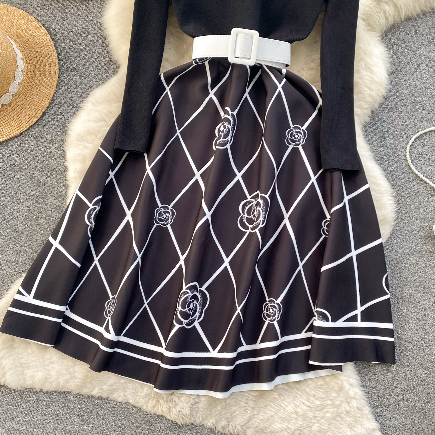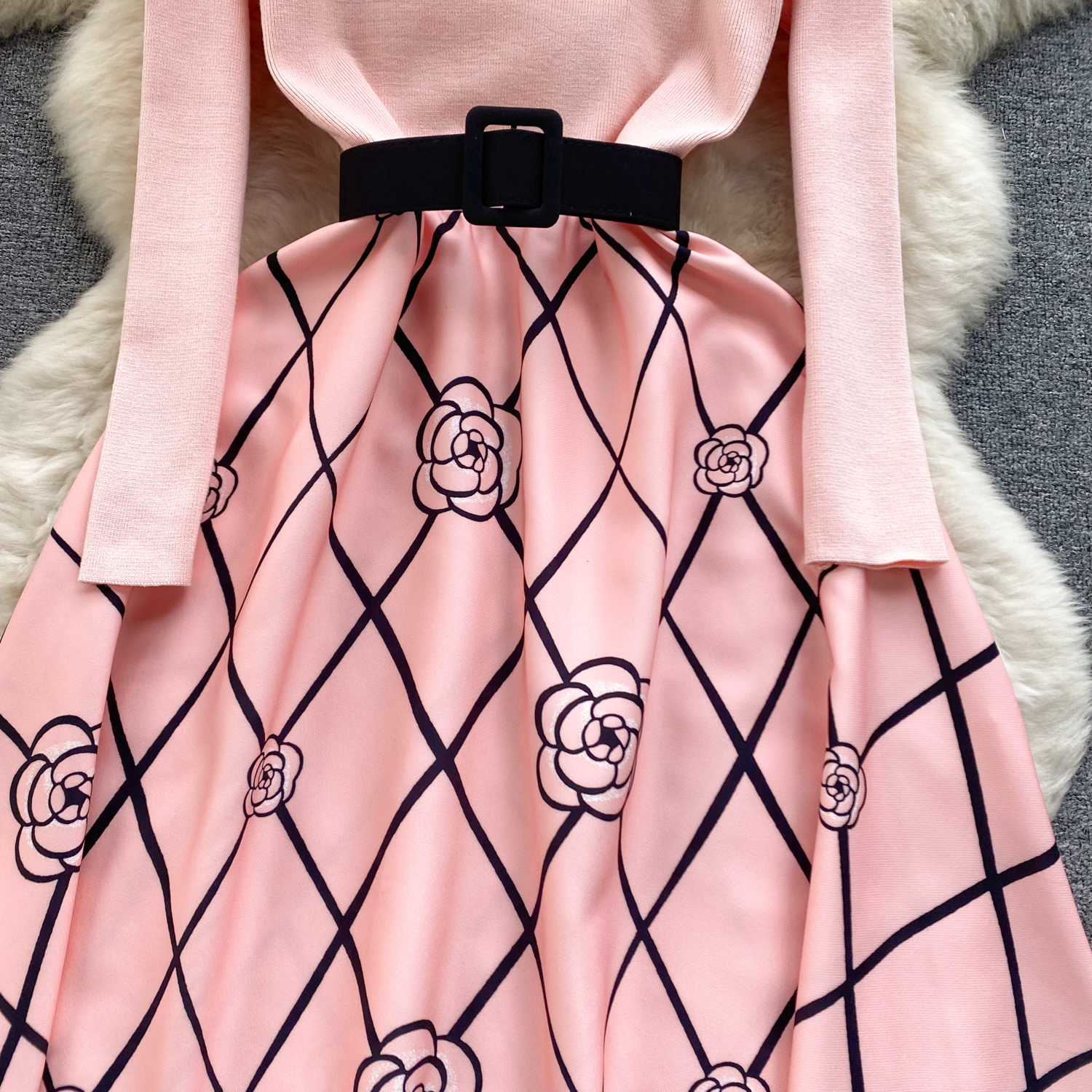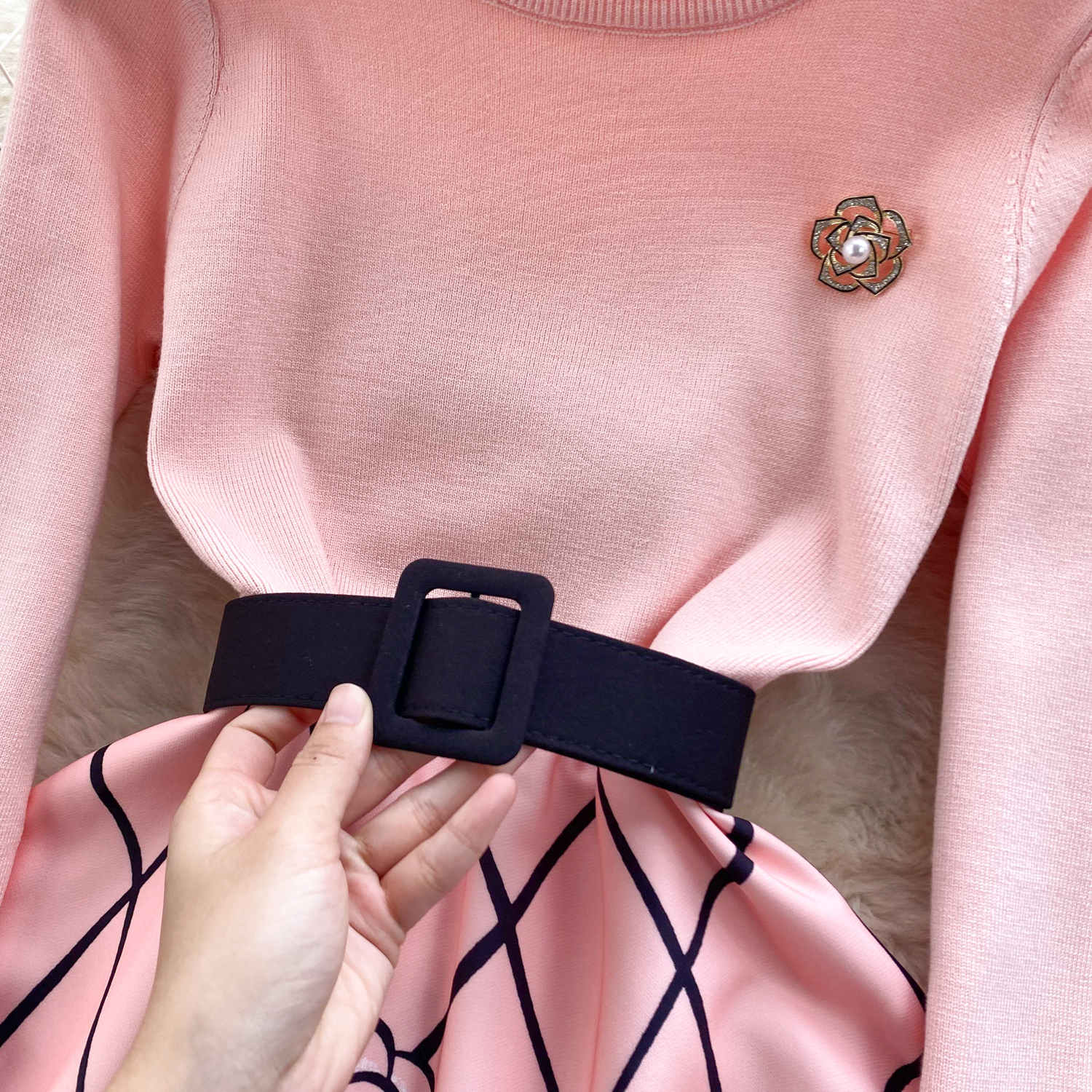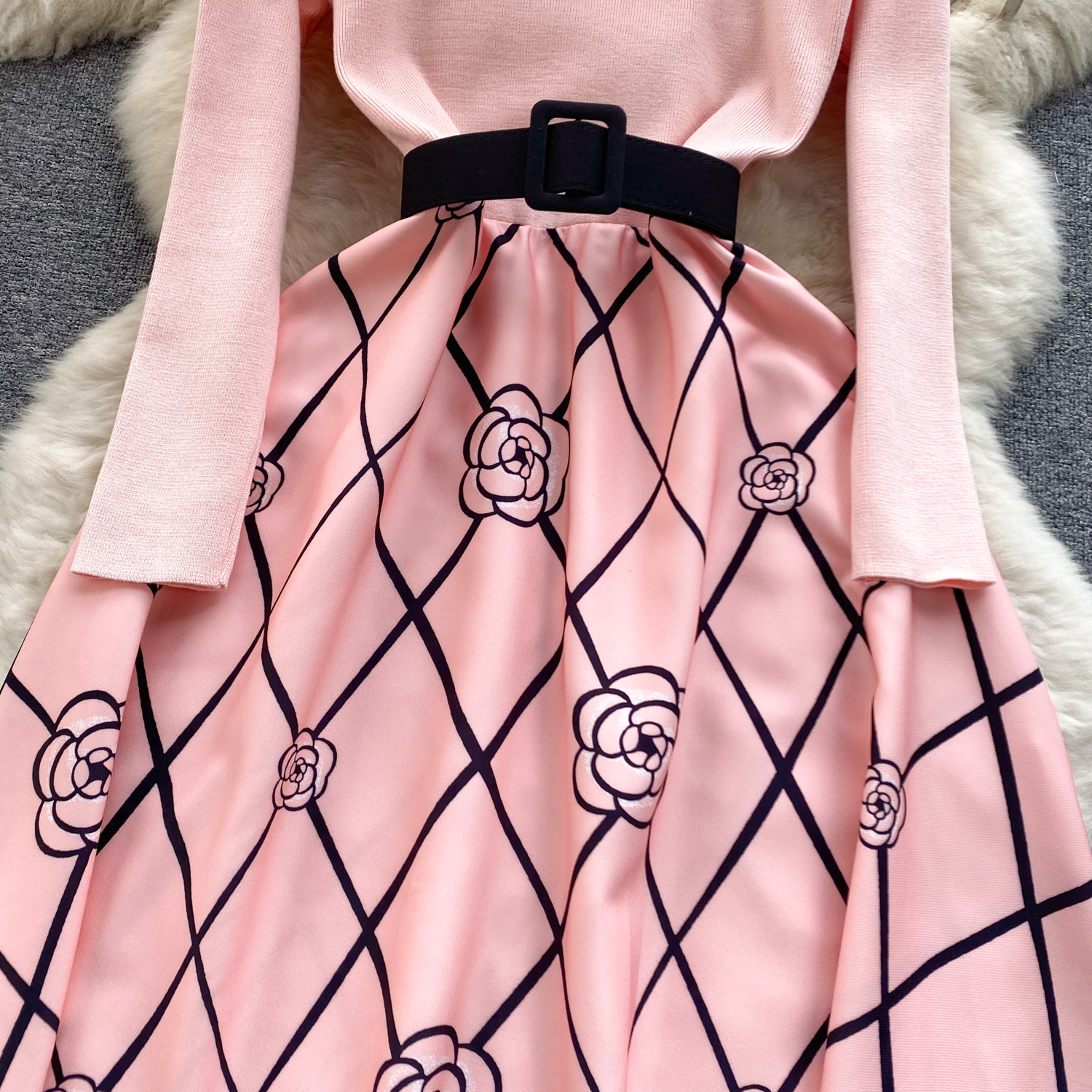 Womens Spring Elegance Quilted Mid-Length Cinched Waist Dress