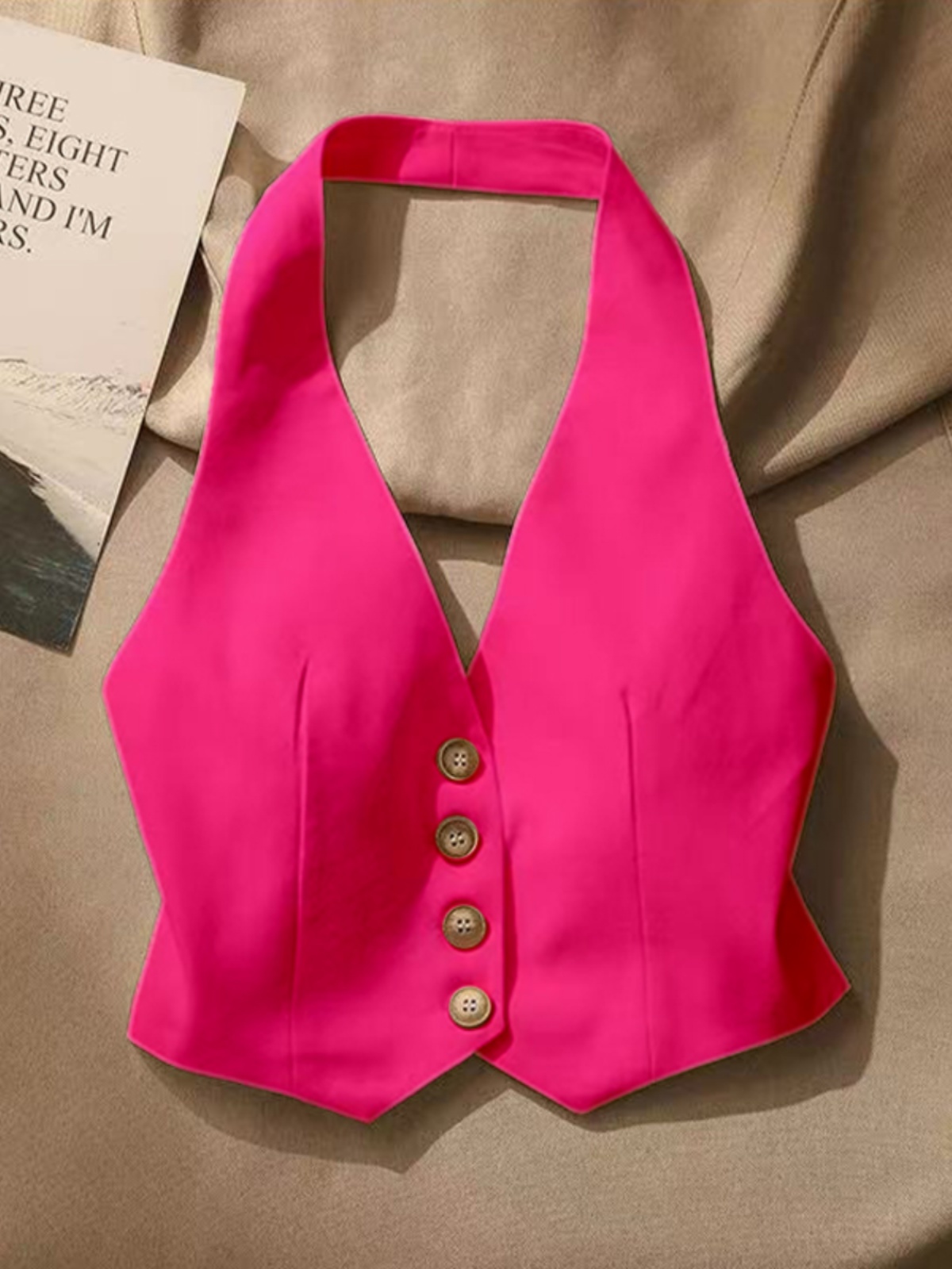 Women's Summer Back Slim Short High-End Chic Halter Neck Camisole Top