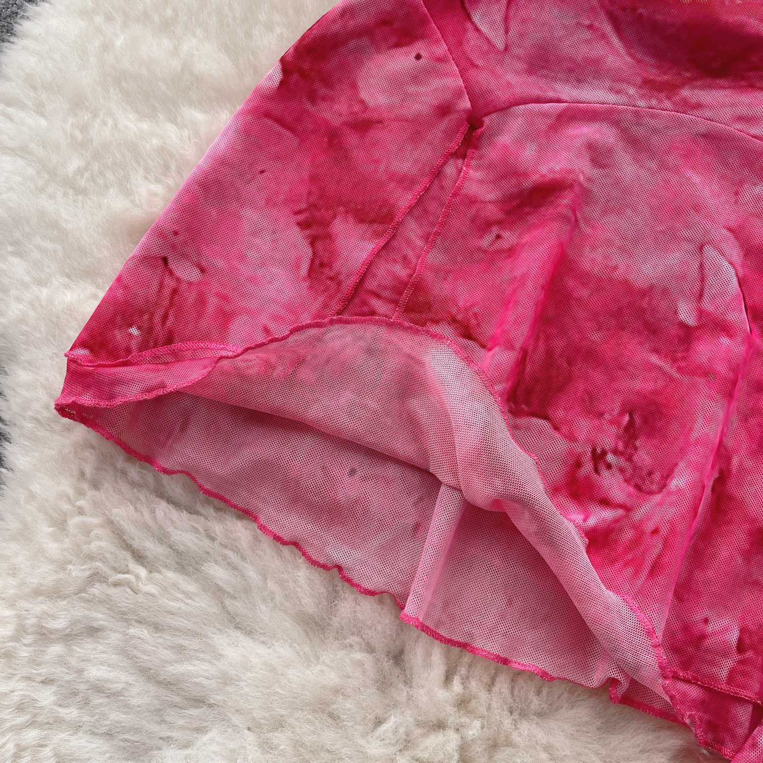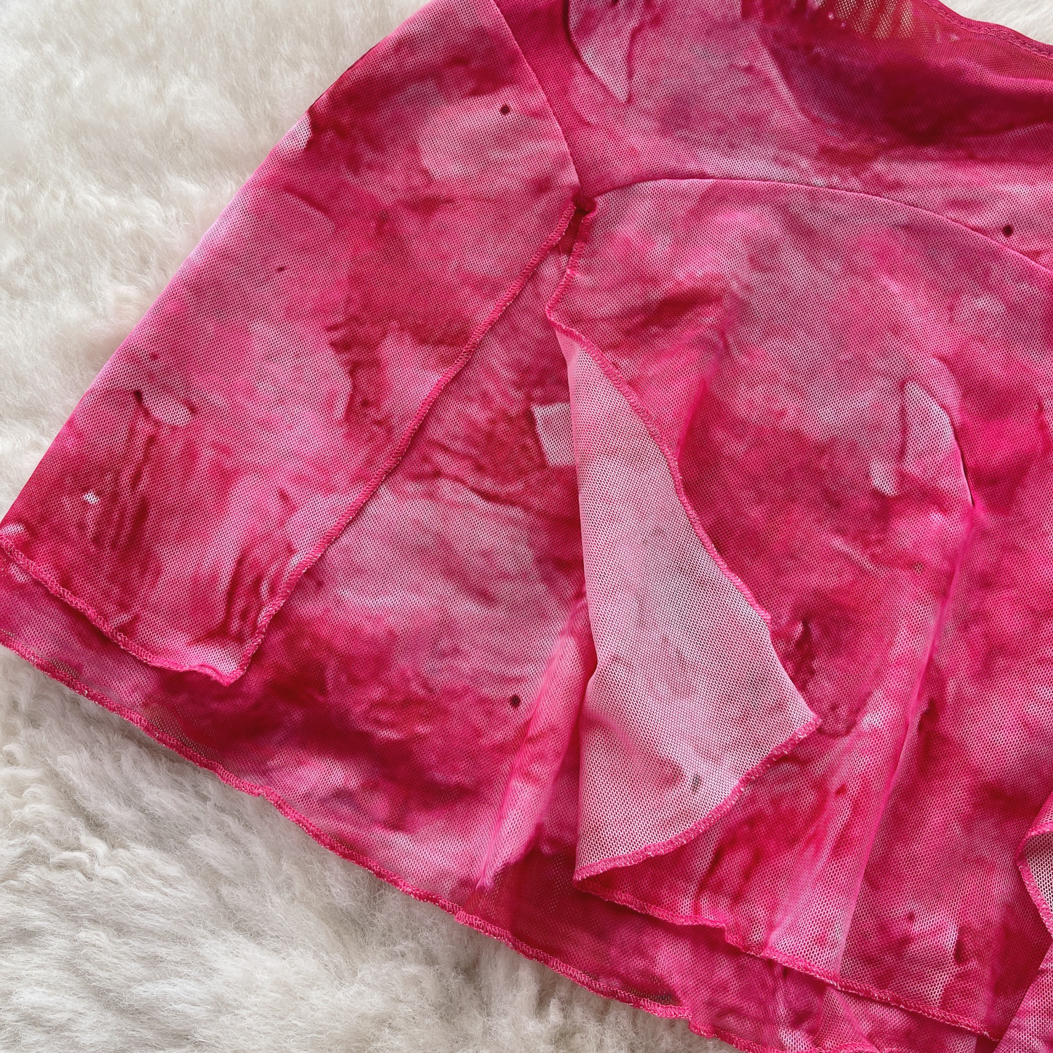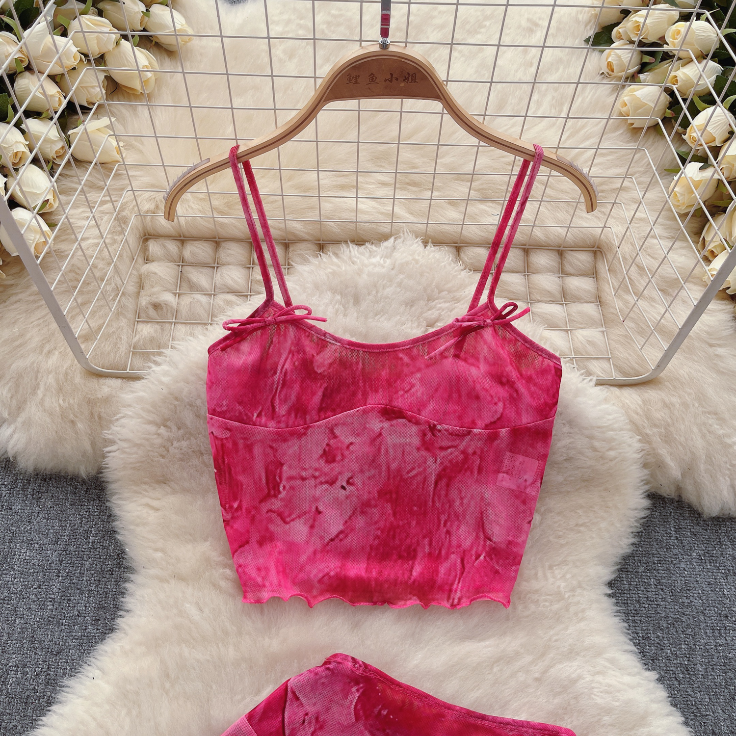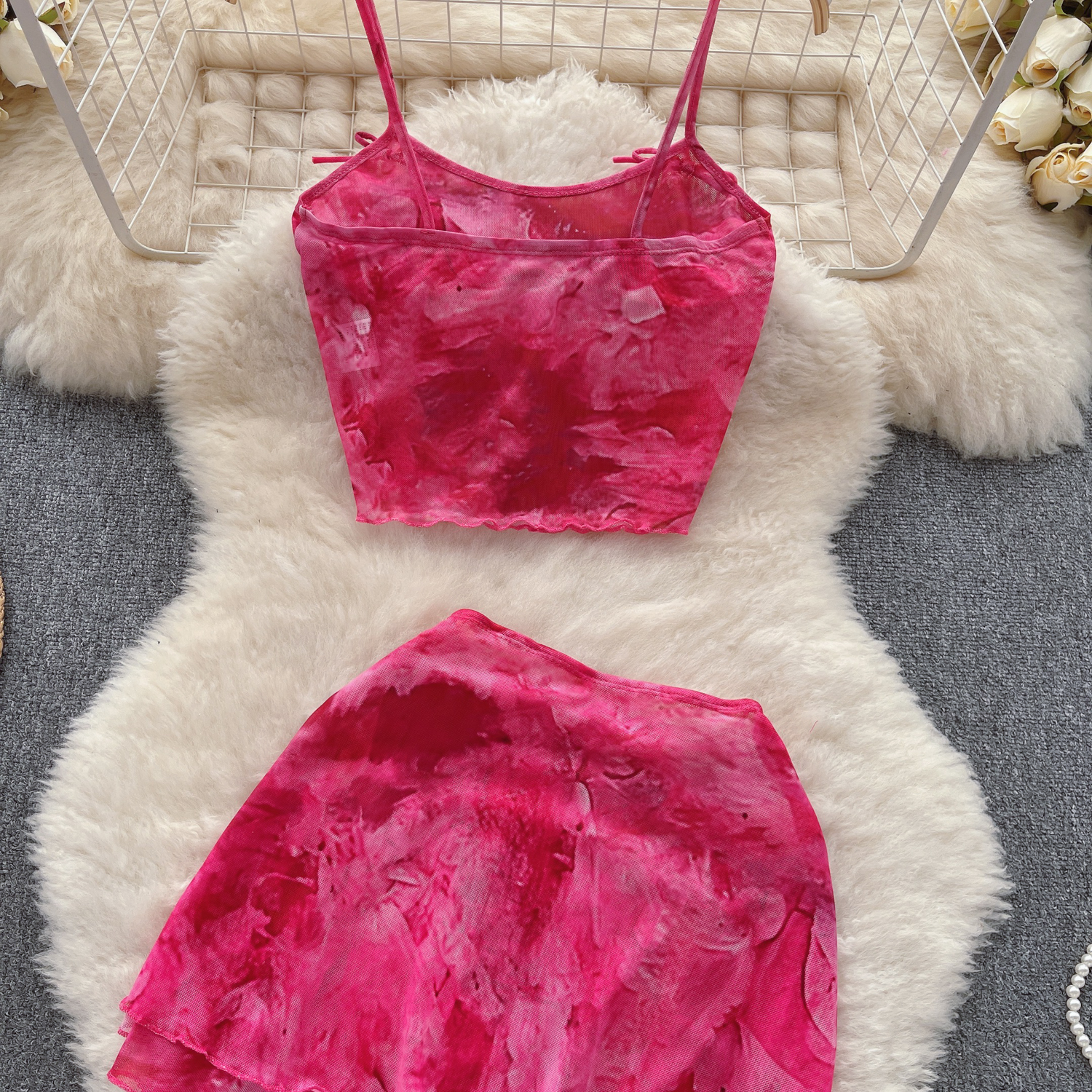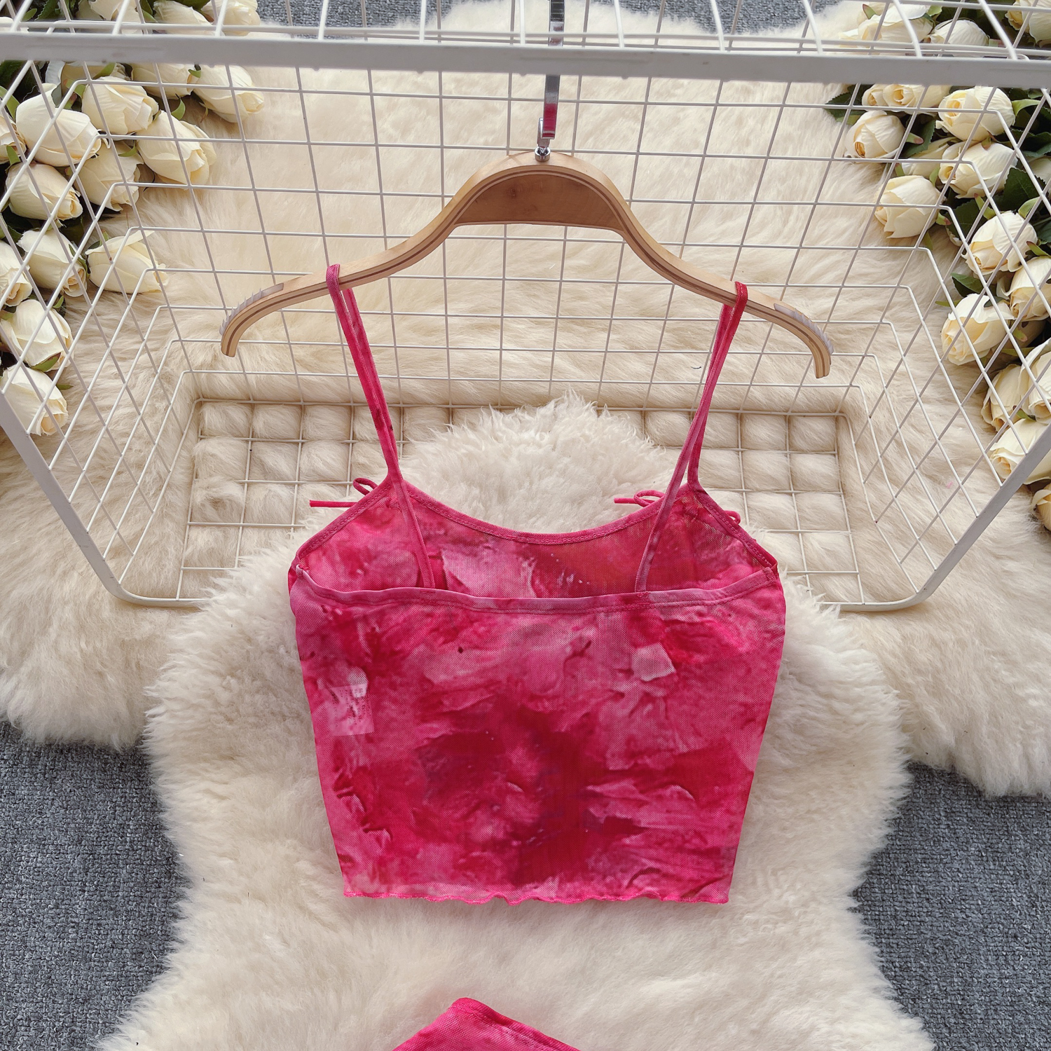 Women's Summer Cool and Spicy Fashion Print Suit Suspender Bandeau Vest & High-waisted Streamer Skirt