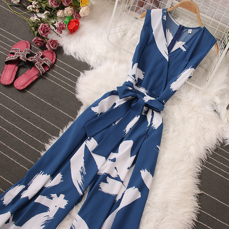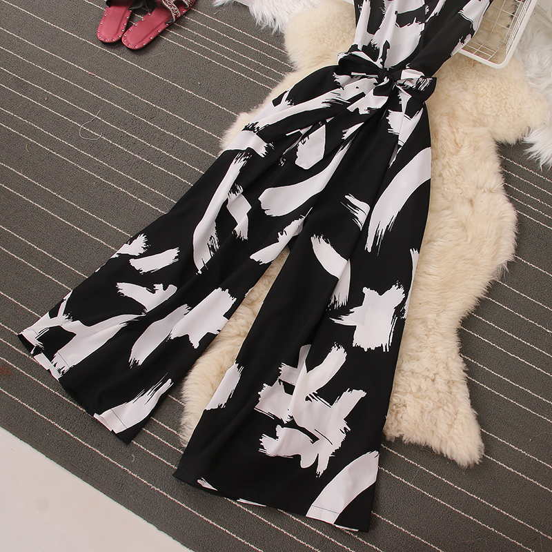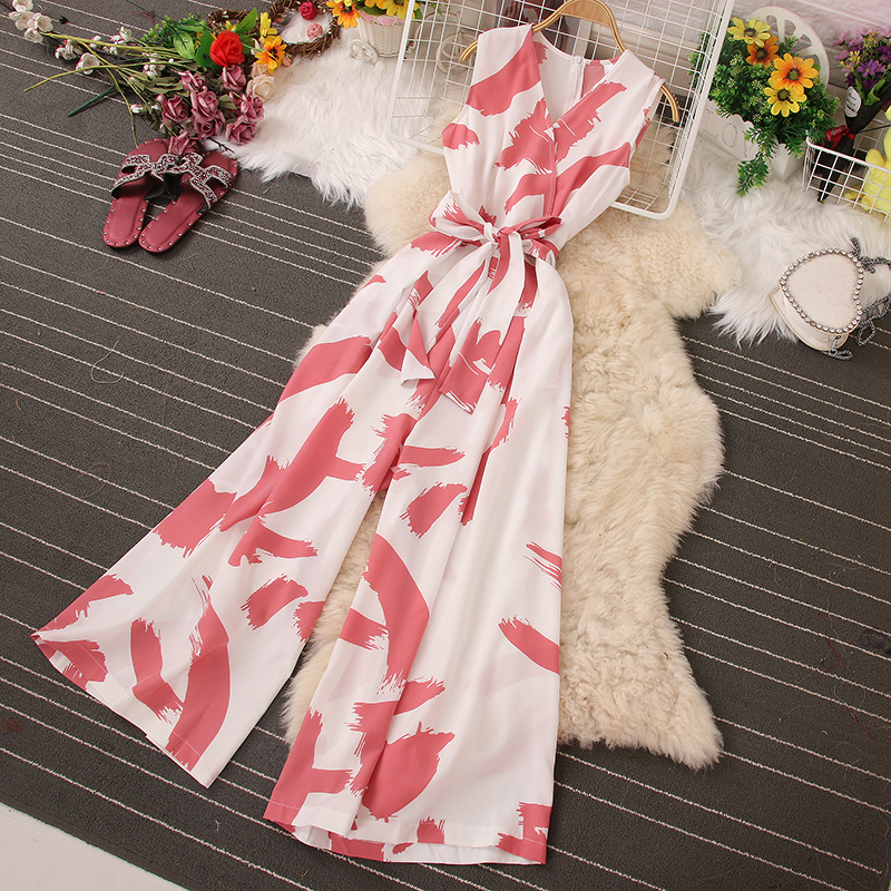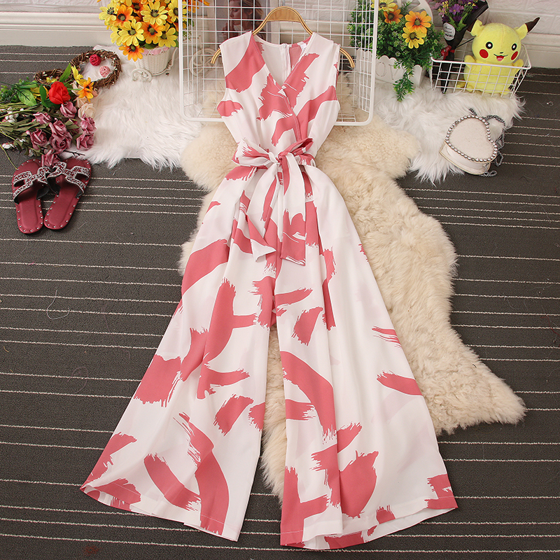 Women's Summer New Style Chiffon Wide-Leg Pants With High-Waisted Drape Sleeveless Jumpsuit