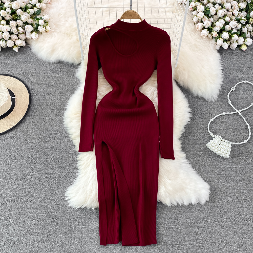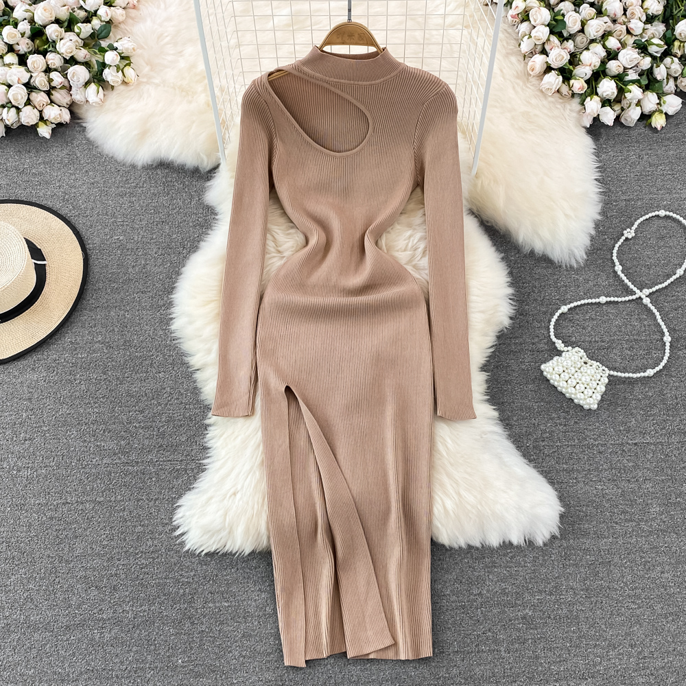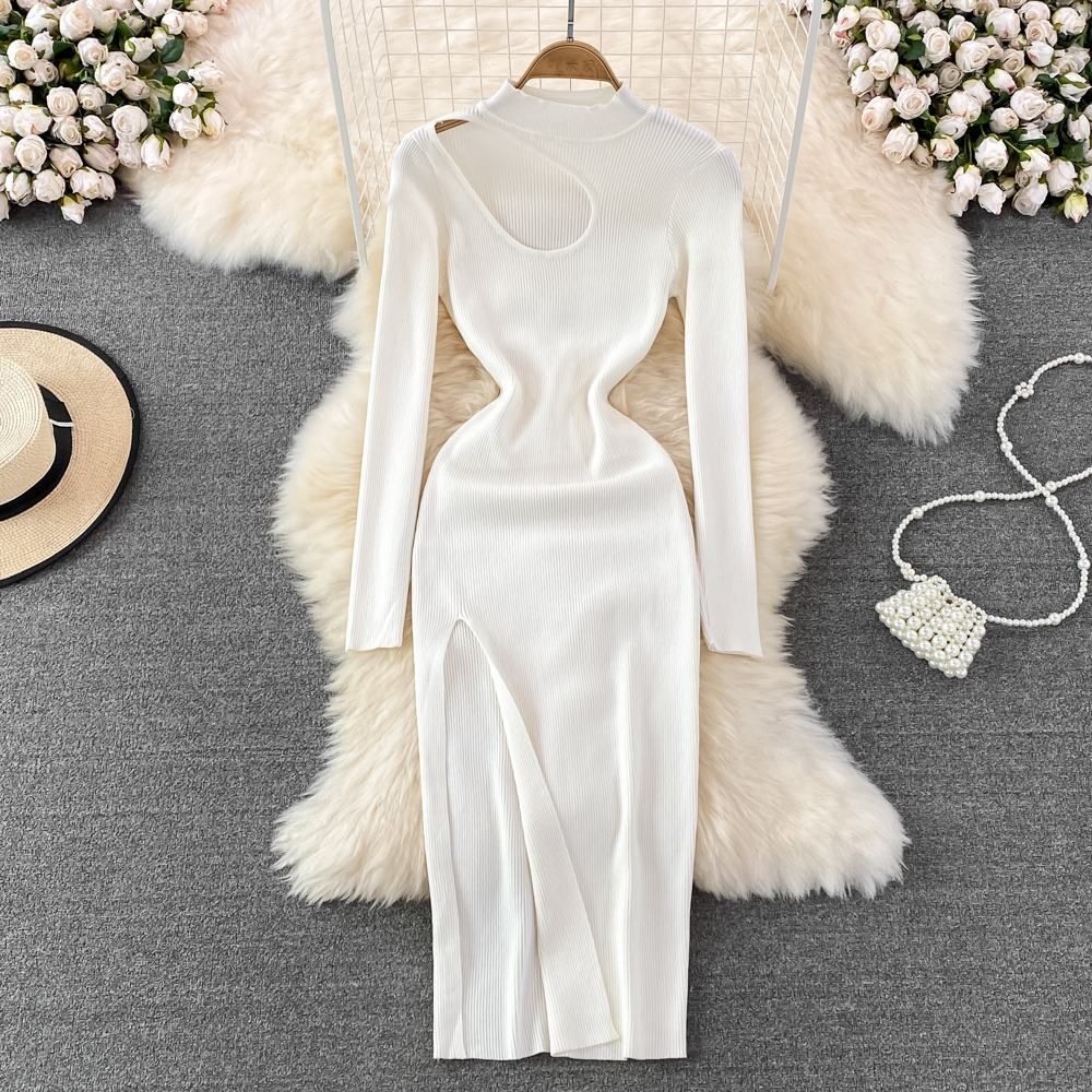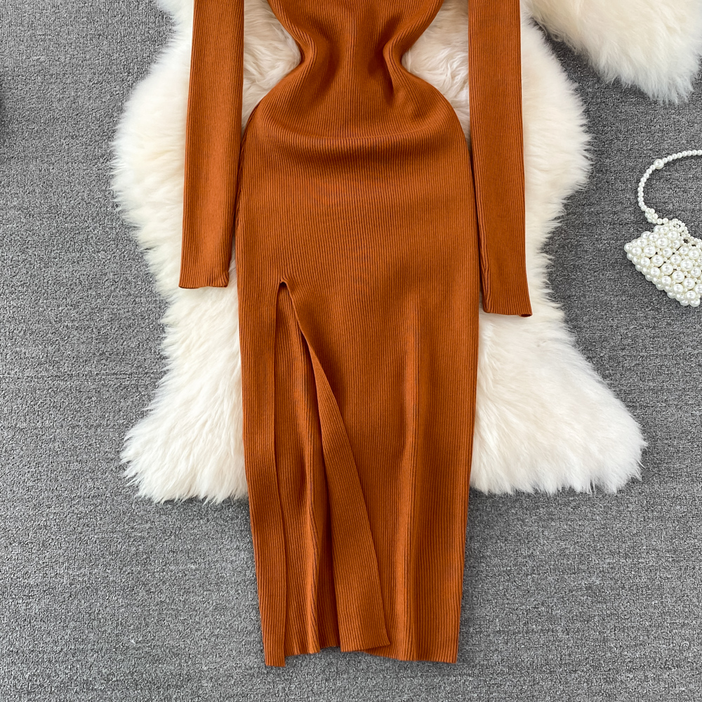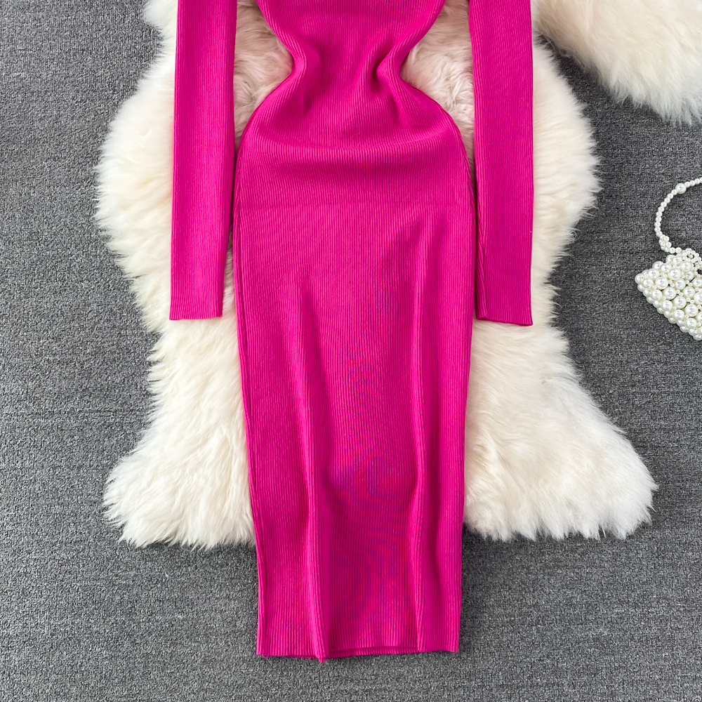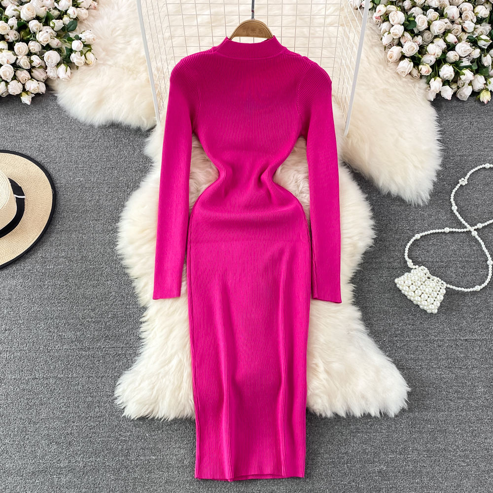 Women's Winter Slim Fit Knitted Bodycon Dress With Long-Sleeved Stand-Collar