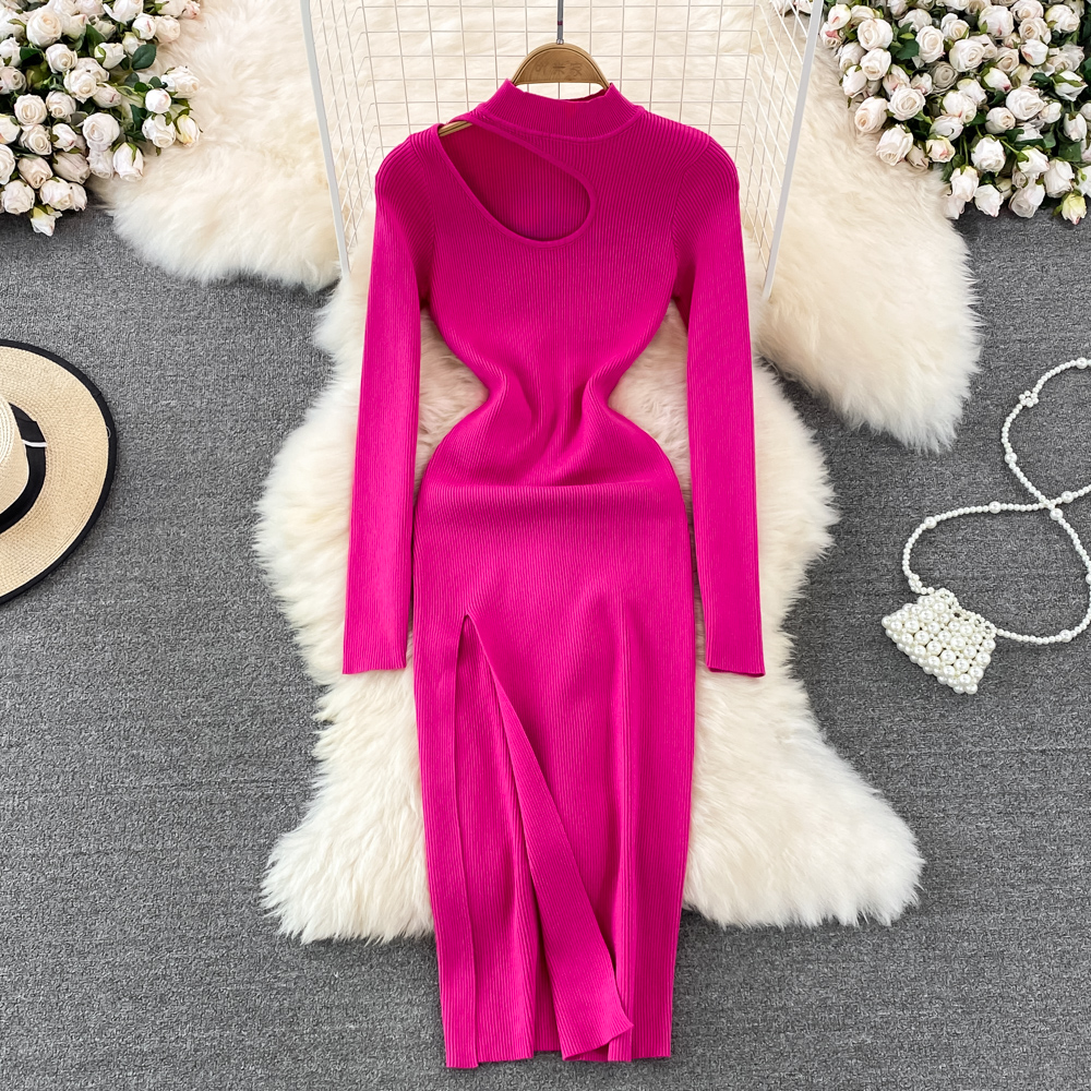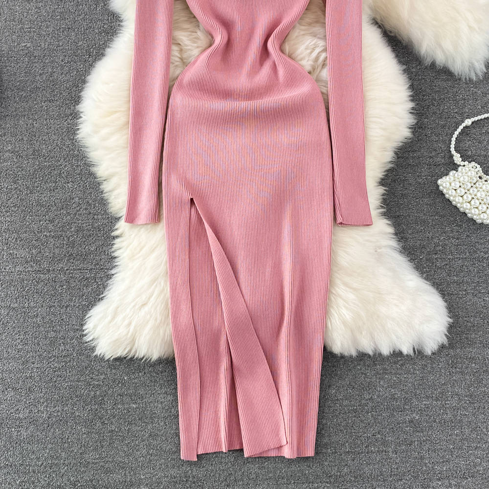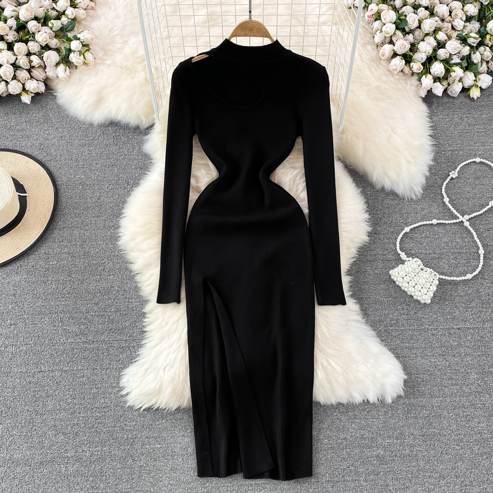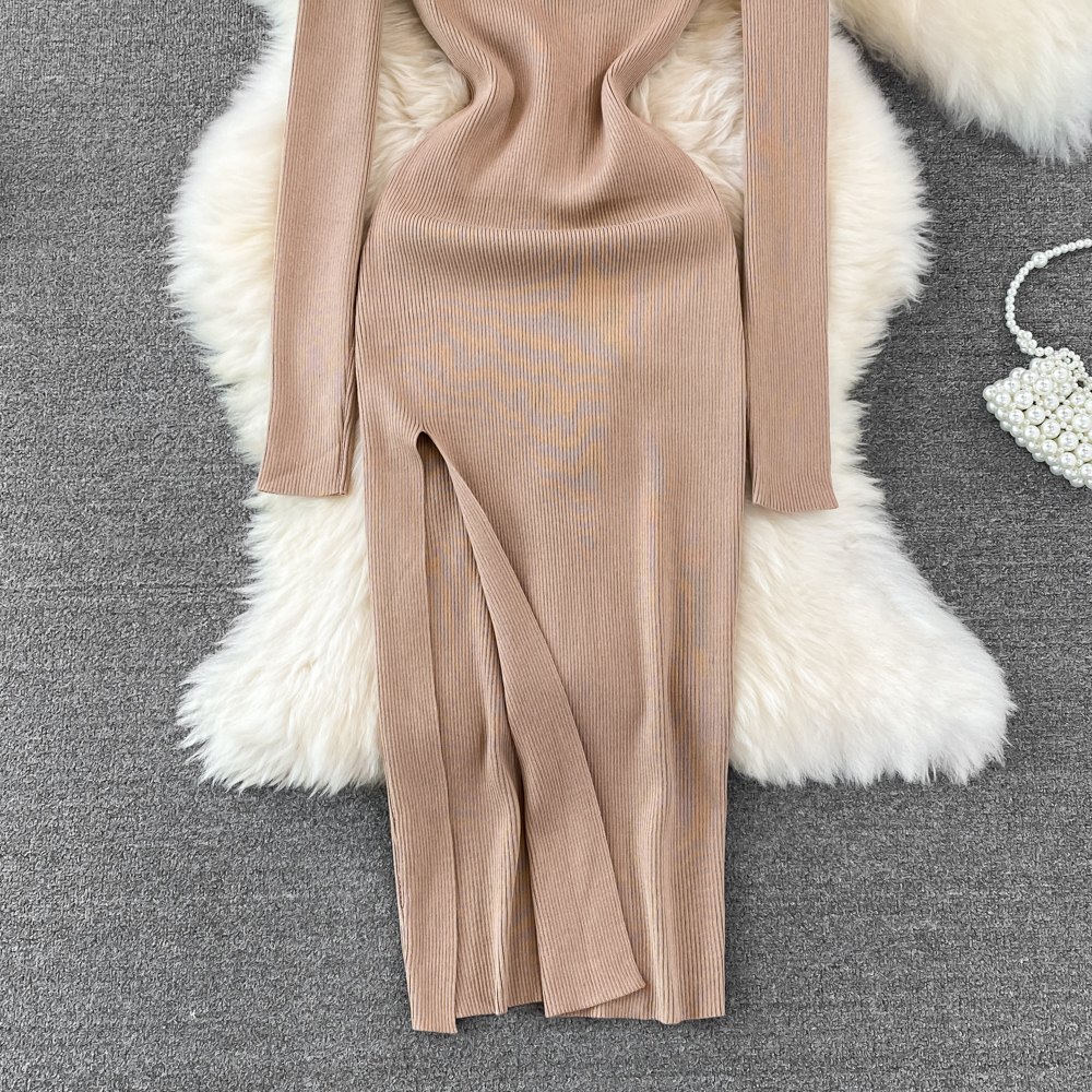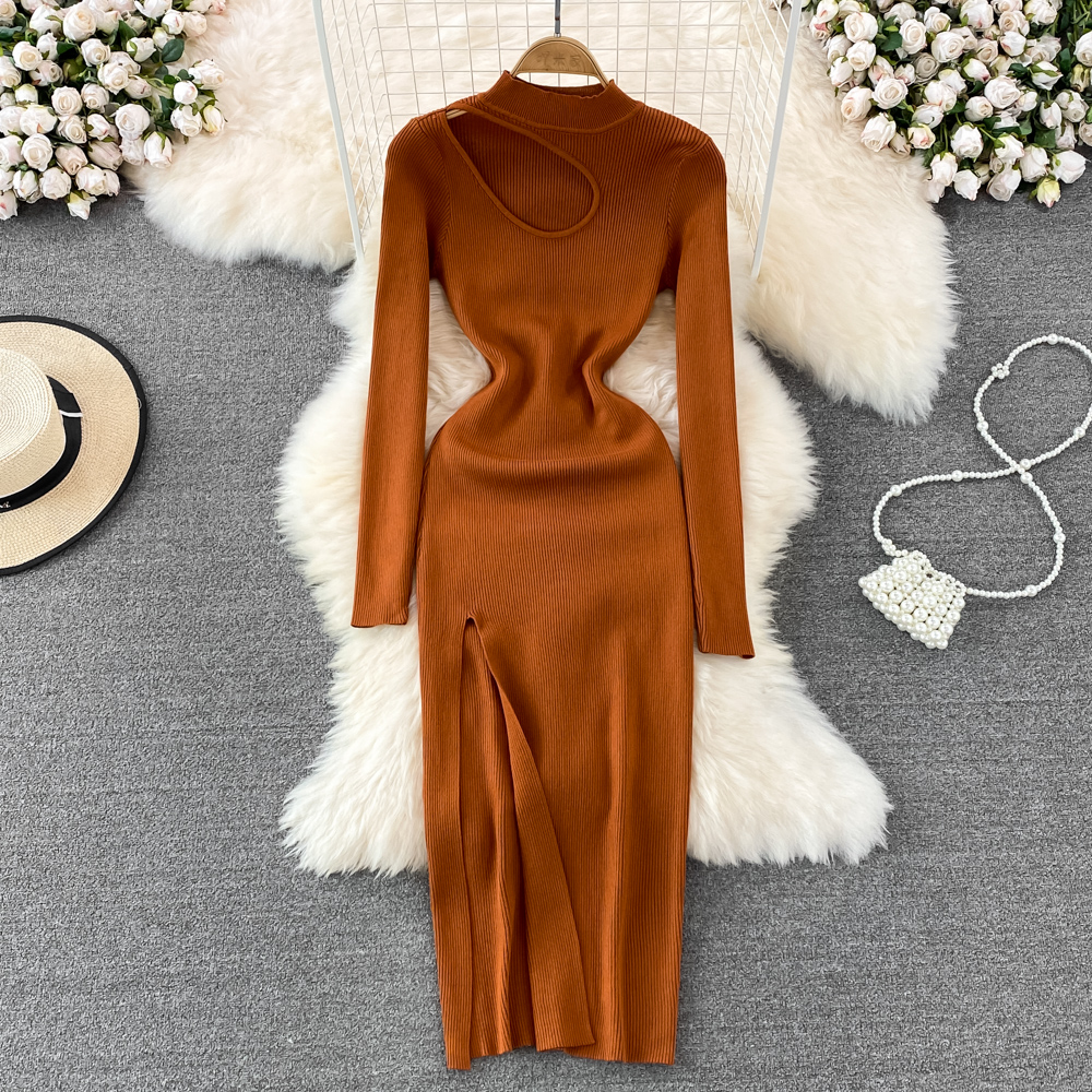 Women's Winter Slim Fit Knitted Bodycon Dress With Long-Sleeved Stand-Collar