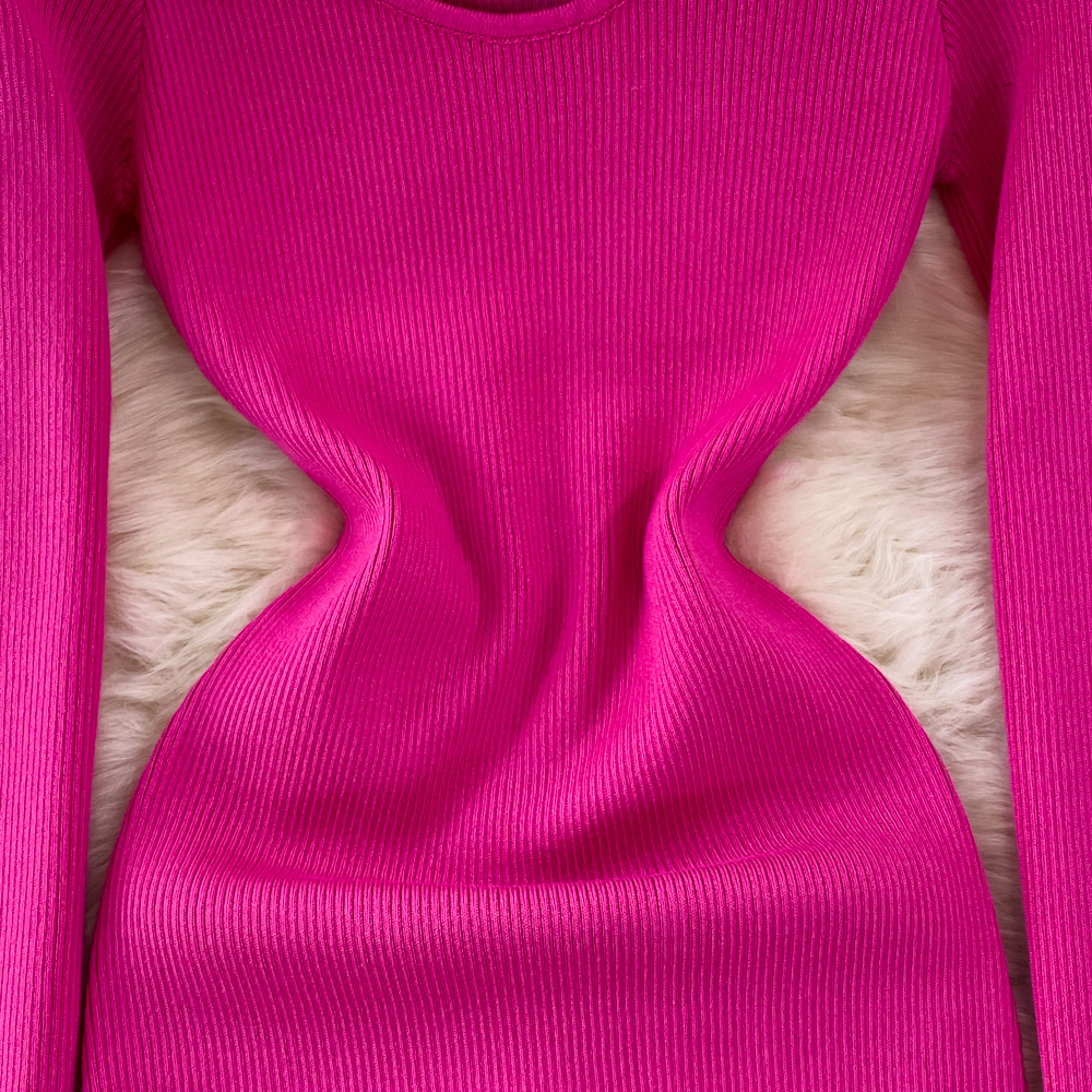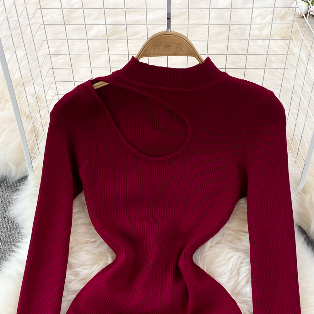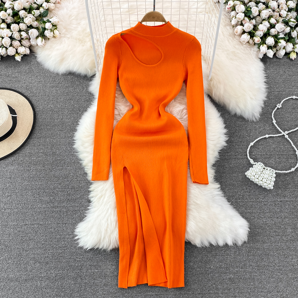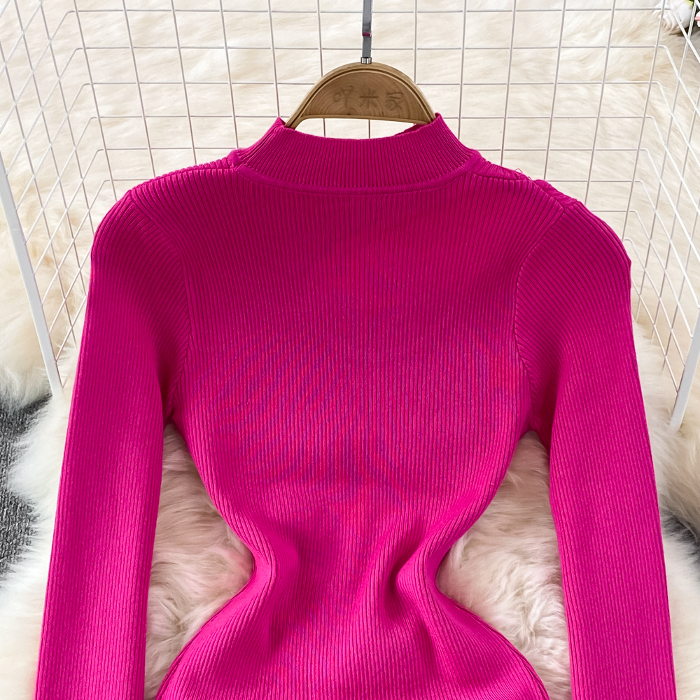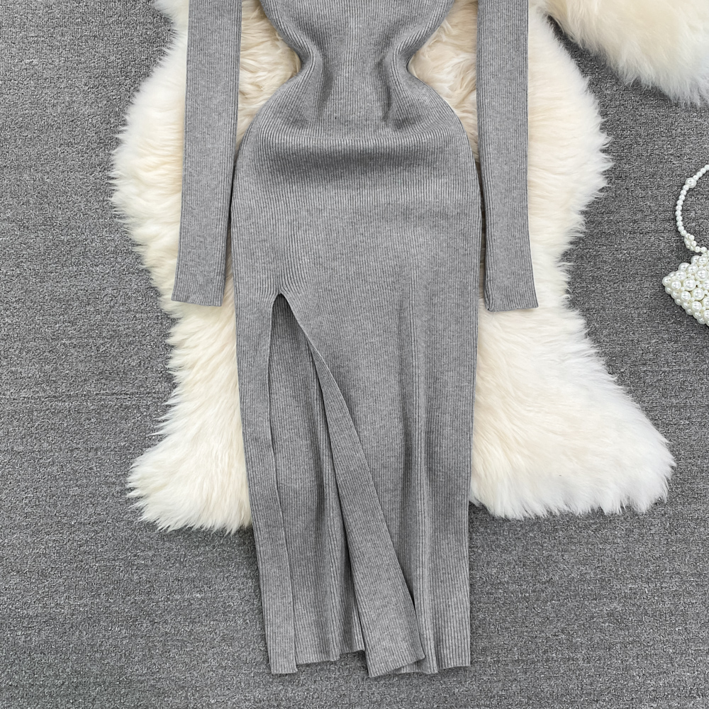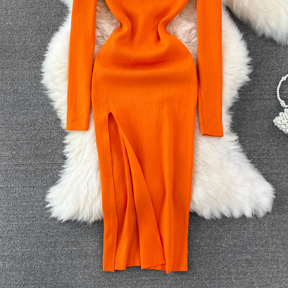 Women's Winter Slim Fit Knitted Bodycon Dress With Long-Sleeved Stand-Collar