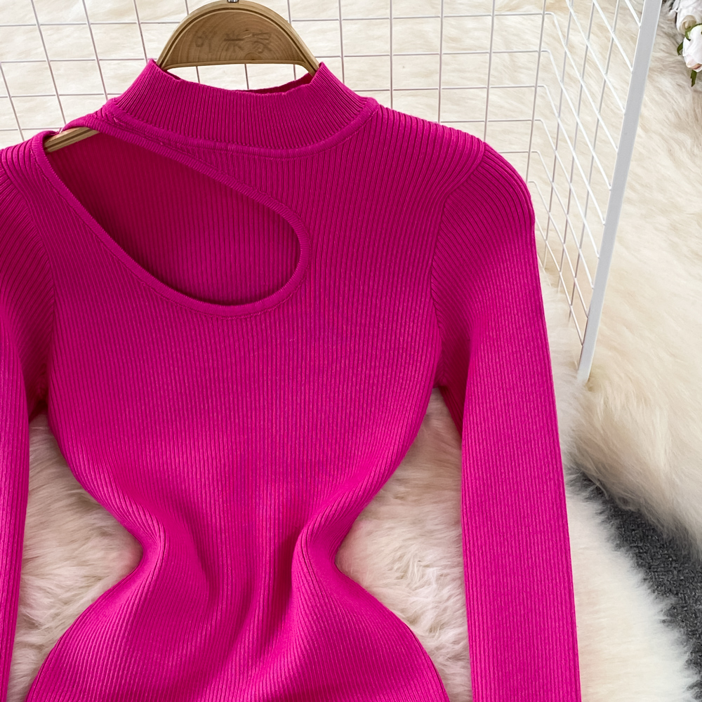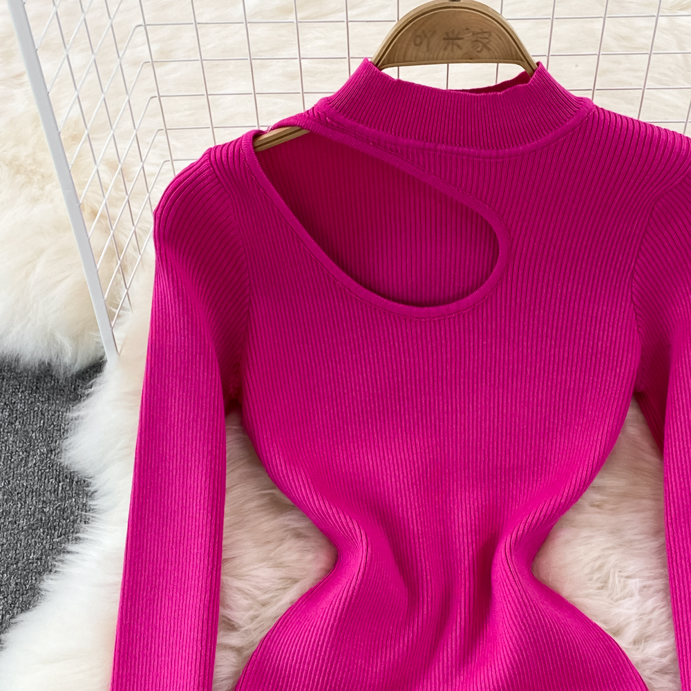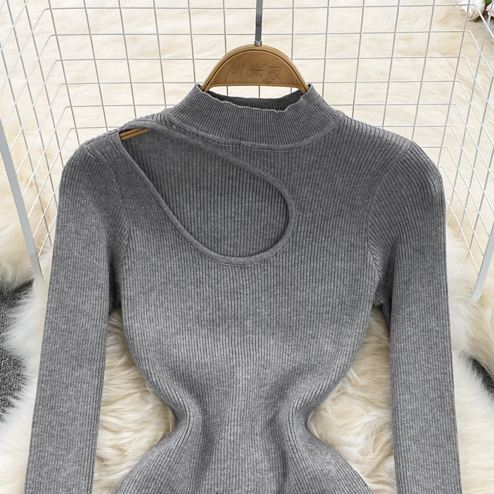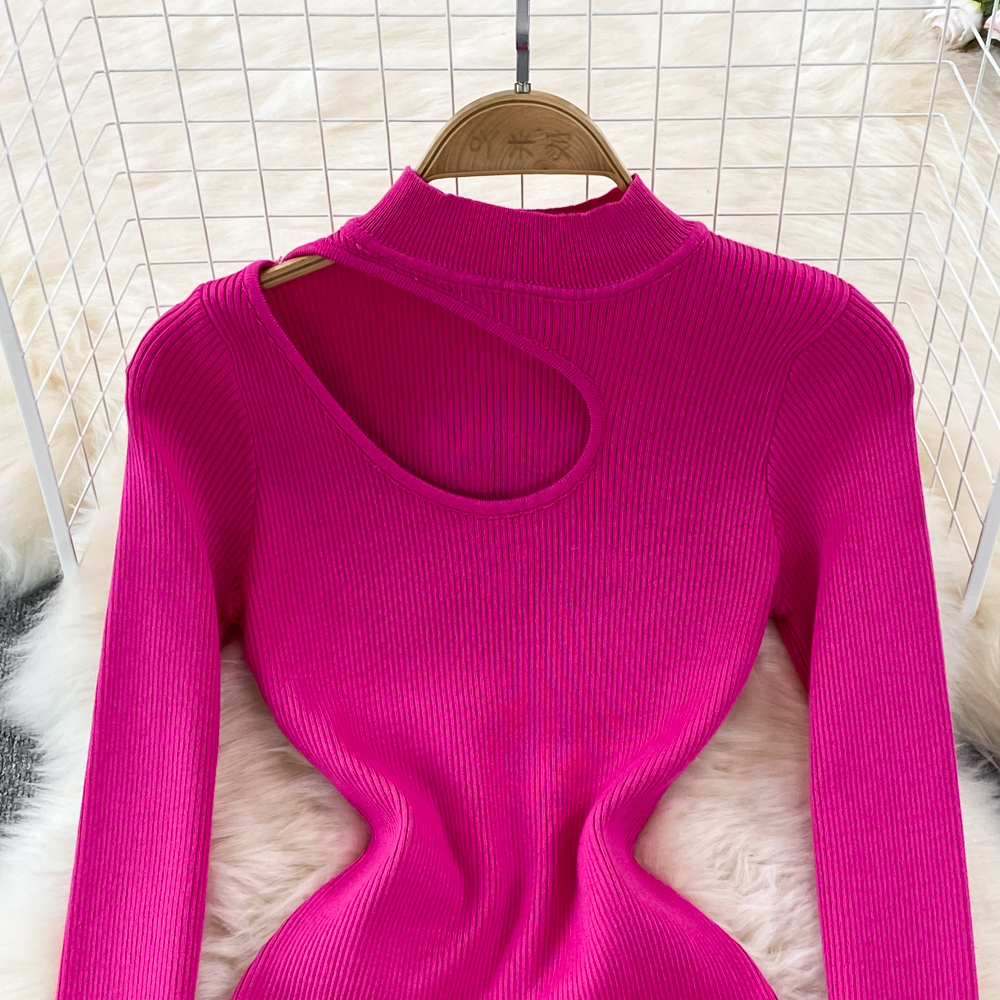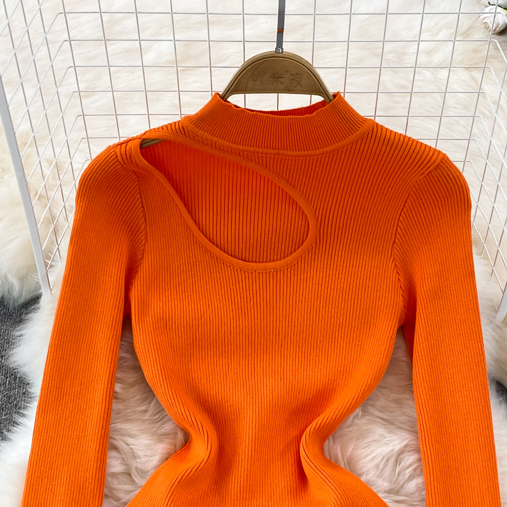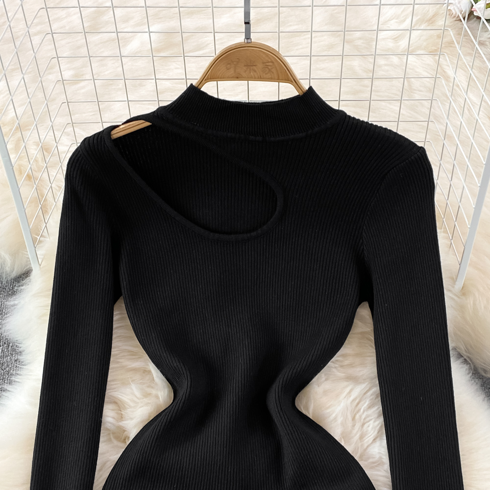 Women's Winter Slim Fit Knitted Bodycon Dress With Long-Sleeved Stand-Collar